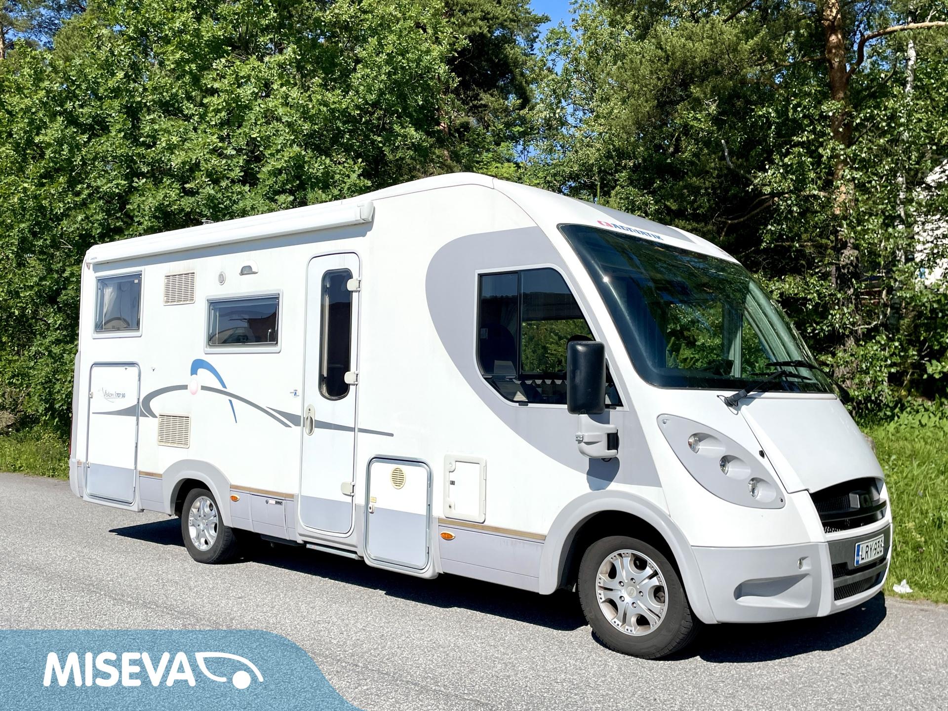 ABS brakes, Airbag, Special wheels, Insulated grey water tank, Fridge, Gas oven, Cassette WC, Cassette blinds, Roof hatch, Keskuslukitus: Kaukosäätöinen, Passenger area carpets, Stove, Traction control, Hot water boiler, Sun shade, Navigator, Power steering, Freezer compartment, Double bed, Sink, Pysäköintikamera, Radio, Shower, Electric windows, Electric heating cartridge, Power side mirrors, TV-antenni tai lautasantenni, Support legs, Double bottom, Turbo, Vakionopeudensäädin, Truma, Ilmastointi (ohjaamo), Ilmastointi (asuintila), kwh-mittari, harmaavesisäiliön lämmitys, laskuvuode, ohjaamon kasettiverhot, jenkkijääkaappi, liesituuletin, televisio, Asuinosan hyttysovi/verho, AL-KO alusta
