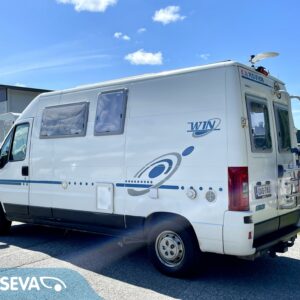 Truma, Fridge, Two tyre sets, Cassette WC, Cassette blinds, Roof hatch, Stove, Engine heater, Hot water boiler, Sun shade, Power steering, Freezer compartment, Double bed, Sink, Fuel-operated additional heater, Bicycle rack, Radio, Interior plug, Electric steps, Turbo, Towing hook, Webasto/Eber, televisio, Peruutuskamera