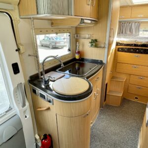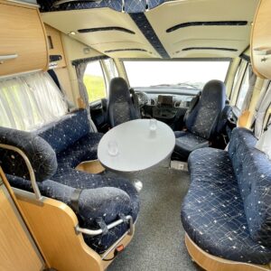 Fridge, Ilmastointi: Manuaalinen, Cab air conditioning, Ilmastointi: Automaattinen, Gas oven, Two tyre sets, Cassette WC, Cassette blinds, Roof hatch, Hot water boiler, Stove, Double bed, Freezer compartment, Sun shade, Electric windows, Vakionopeudensäädin, Turbo, Trumatic, ABS brakes, Roof railing/ladder, Central heating, Ignition interlock, Passenger area carpets, Navigator, Power steering, Sink, Fuel-operated additional heater, Radio, Shower, Special wheels