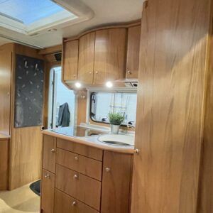 Trip computer, Airbag, Cab air conditioning, Air conditioning man., Fridge, Gas oven, Cassette WC, Cassette blinds, Roof hatch, Central heating, Stove, Hot water boiler, Sun shade, Power steering, Double bed, Sink, Shower, Electric windows, Power side mirrors, Trumatic, Turbo, Cruise control, kwh-mittari, jenkkijääkaappi, Polkupyöräteline, Two tyre sets, TV-antenni tai lautasantenni, Electric steps, ohjaamon kasettiverhot