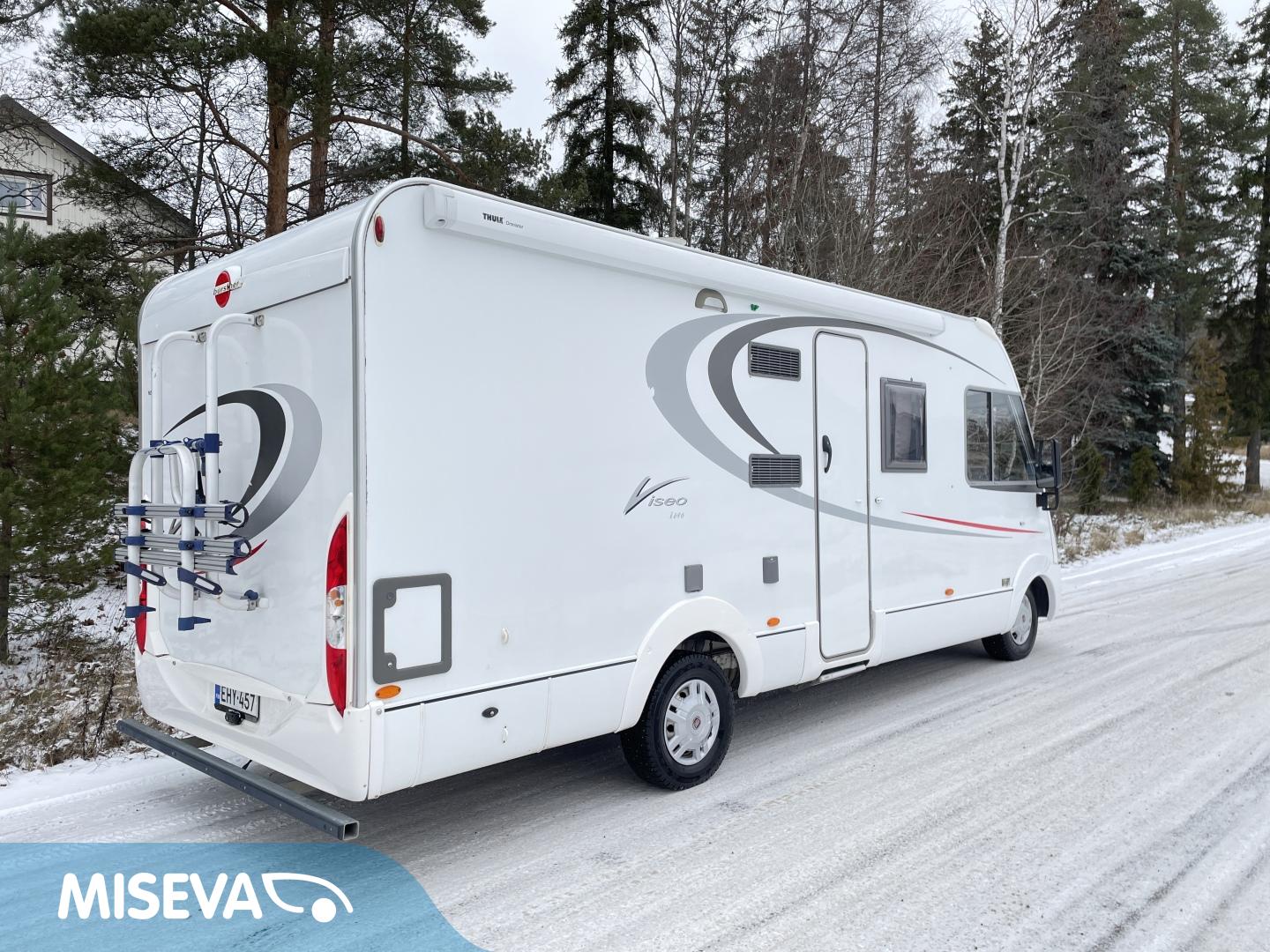 Trip computer, ABS brakes, Airbag, Special wheels, Cab air conditioning, Fridge, Cassette WC, Cassette blinds, Roof hatch, Central heating, Floor heating, Stove, Hot water boiler, Sun shade, Power steering, Double bed, Sink, Bicycle rack, Shower, Electric windows, Electric heating cartridge, Power side mirrors, Trumatic, Support legs, Turbo, TV antenna/satellite dish, Cruise control, CD-Radio, Lattialämmitys (sähkö), Ilmastointi (ohjaamo), Ilmastointi (asuintila), harmaavesisäiliön lämmitys, laskuvuode, ranskalainen vuode, kaasun ulosotto, televisio, ohjaamon kasettiverhot