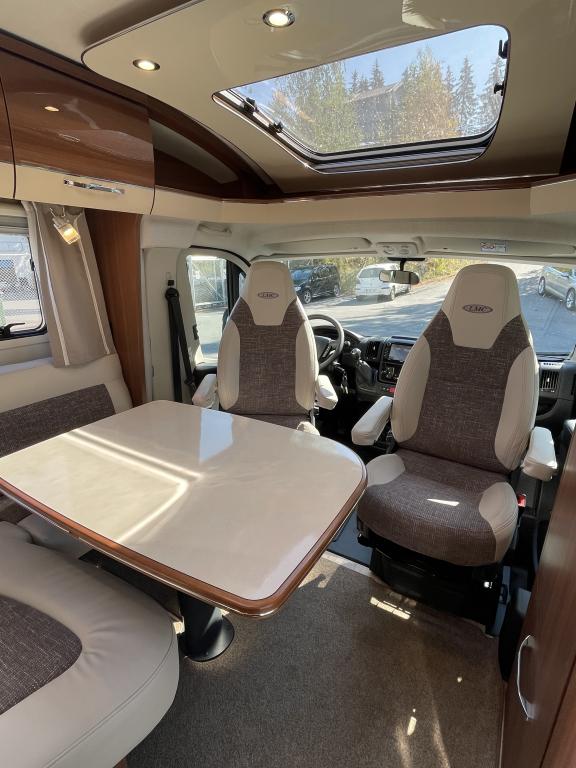 Ajotietokone,ABS-jarrut,Airbag,Ajonvakautus,Aurinkopaneeli,Eristetty harmaavesisäiliö,Ilmastointi ajotilassa,Jääkaappi,Kasetti WC,Kasettiverhot,Kattoluukku,Keskuslukitus kaukosäädöllä,Käynnistyksenesto,Lattiamatot asunto-osassa,Liesi,Lämminvesiboileri,Markiisi,Ohjaustehostin,Pakastelokero,Parivuode,Parkkitutka / kamera,Pesuallas,Pyöräteline,Stereot,Suihku,Sähkökäyttöiset ikkunat,Sähköpatruuna,Sähköpeilit,Trumatic,Turbo,Vak.nopeudensäädin,Luistonestojärjestelmä,Navigointijärjestelmä,Turvatyynyt,soitin