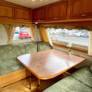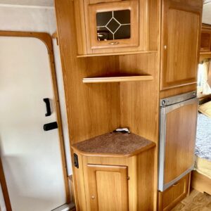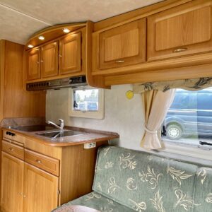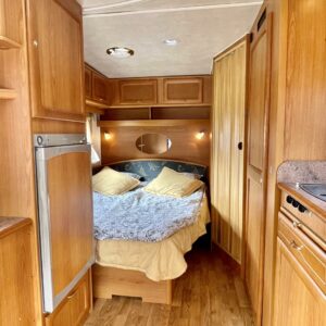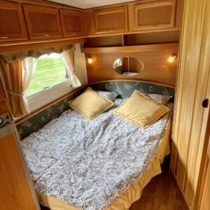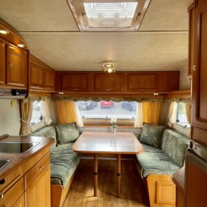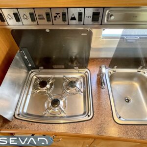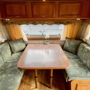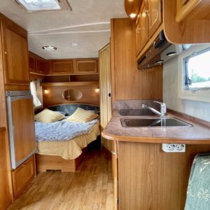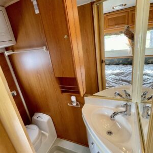 Alde, Special wheels, Fridge, Cassette WC, Cassette blinds, Roof hatch, Stove, Fluid circulation heating, Freezer compartment, Double bed, Sink, Radio, Interior plug, Shower, Electric heating cartridge, Support legs
