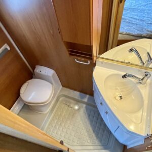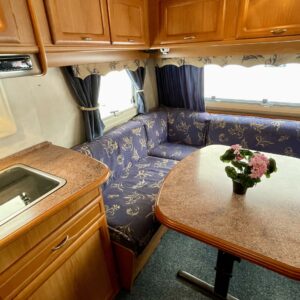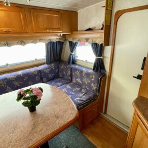 Alde, Fridge, Cassette WC, Cassette blinds, Roof hatch, Central heating, Floor heating, Stove, Hot water boiler, Freezer compartment, Double bed, Sink, Shower, Electric heating cartridge, Support legs, 1 x kevytmet.vanteet, kwh-mittari, sähkön ulosotto, Radio, Fluid circulation heating