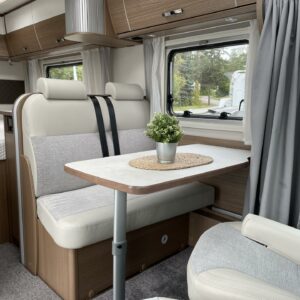 ABS brakes, Solar panel, Cab air conditioning, Cassette WC, Two tyre sets, Cassette blinds, Keskuslukitus: Kaukosäätöinen, Ignition interlock, Floor heating, Stove, Hot water boiler, Power steering, Freezer compartment, Double bed, Sink, Pysäköintikamera, Bicycle rack, Radio, Electric windows, Electric heating cartridge, Power side mirrors, Trumatic, Turbo, Vakionopeudensäädin, Airbag, Bluetooth, Special wheels, Ilmastointi: Manuaalinen, Fridge, Roof hatch, Passenger area carpets, Navigator, Shower, Electric steps, Lattialämmitys (sähkö), Ilmastointi (ohjaamo), Invertteri, liesituuletin, televisioteline, Multimedialaite (sis. p-kamera, navi, Player, bluetooth, handsfree), Asuinosan hyttysovi/verho