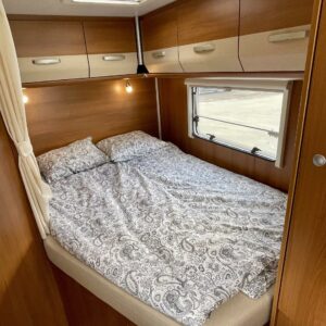 Truma, ABS brakes, Airbag, CD-soitin, Special wheels, Fridge, Cassette WC, Cassette blinds, Roof hatch, Ignition interlock, Floor heating, Stove, Hot water boiler, Sun shade, Power steering, Freezer compartment, Double bed, Sink, Pysäköintikamera, Bicycle rack, Shower, Electric windows, Electric heating cartridge, Power side mirrors, Electric steps, TV-antenni tai lautasantenni, Turbo, Vakionopeudensäädin, Lattialämmitys (sähkö), Ilmastointi (ohjaamo), liesituuletin, televisioteline, Asuinosan hyttysovi/verho