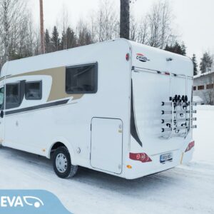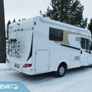 ABS brakes, Airbag, Trip computer, Fridge, Ilmastointi: Manuaalinen, Two tyre sets, Cassette WC, Cassette blinds, Roof hatch, Ignition interlock, Passenger area carpets, Stove, Traction control, Hot water boiler, Sink, Double bed, Freezer compartment, Power steering, Sun shade, Engine heater, Radio, Shower, Electric windows, Electric heating cartridge, Bicycle rack, Pysäköintikamera, Power side mirrors, Electric steps, Trumatic, Turbo, Vakionopeudensäädin, Multimedialaite (sis. p-kamera, navi, Player, bluetooth, handsfree), Asuinosan hyttysovi/verho