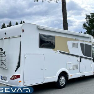 ABS brakes, Airbag, Special wheels, Separate beds, Cab air conditioning, Fridge, Cassette WC, Cassette blinds, Roof hatch, Stove, Hot water boiler, Sun shade, Navigator, Power steering, Freezer compartment, Sink, Pysäköintikamera, Bicycle rack, Radio, Shower, Electric windows, Power side mirrors, Electric steps, Trumatic, Turbo, Vakionopeudensäädin, Talvirenkaat(kitka), 1 x kevytmet.vanteet, Solar panel, Keskuslukitus: Kaukosäätöinen, Ilmastointi (ohjaamo), laskuvuode, jenkkijääkaappi, Asuinosan hyttysovi/verho, Multimedialaite (sis. p-kamera, navi, Player, bluetooth, handsfree), Alla kitkarenkaat