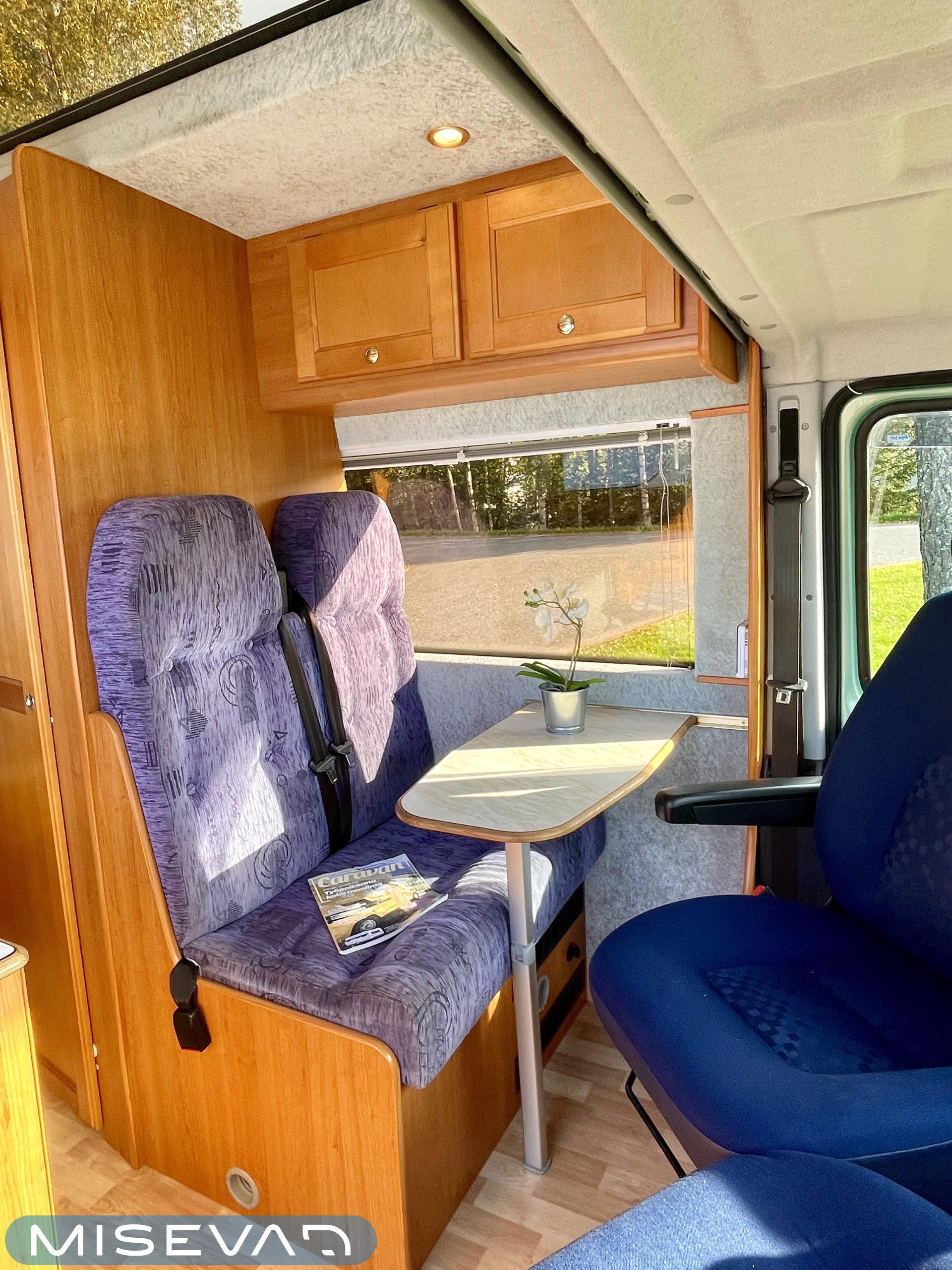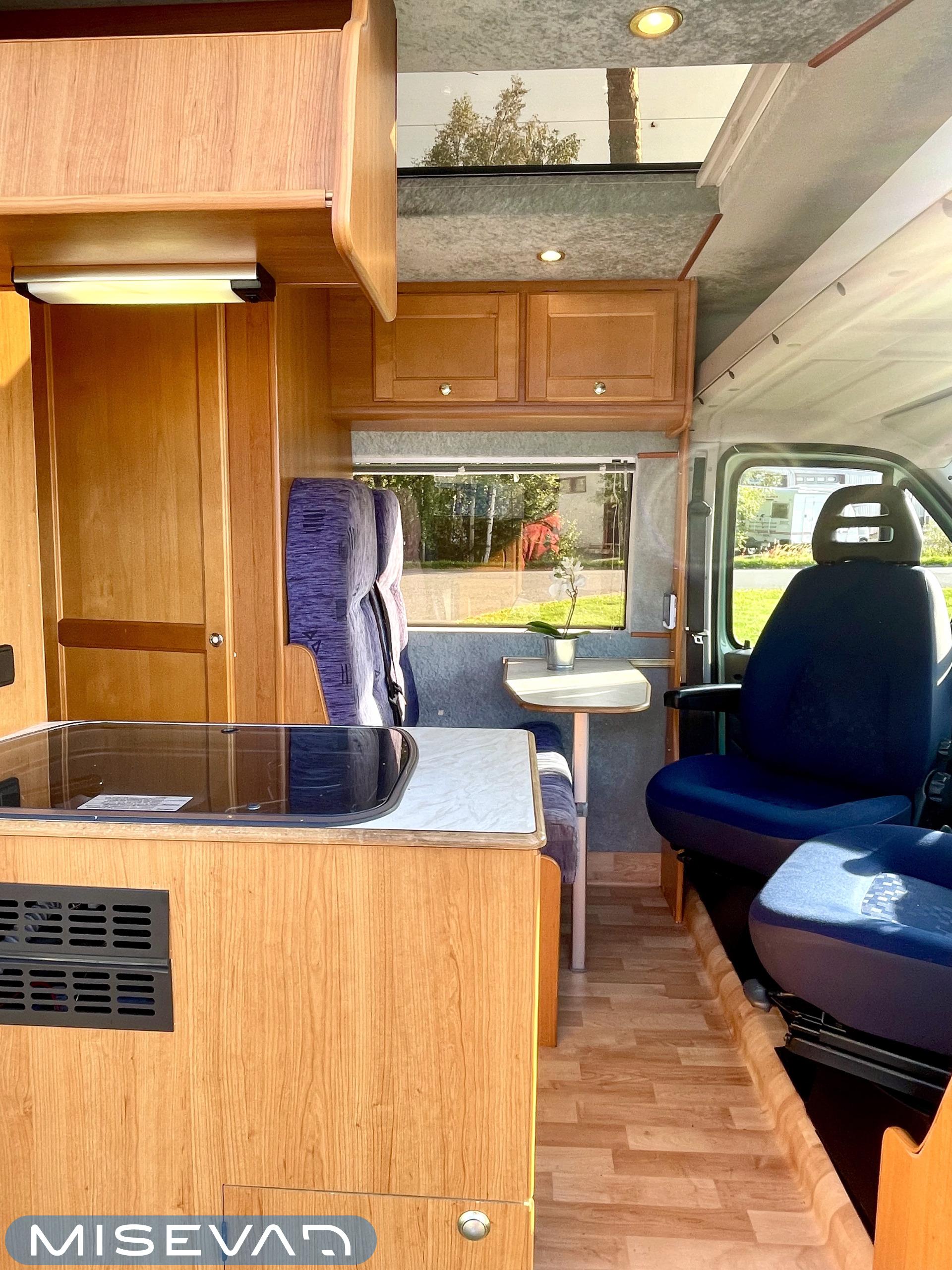 Service history, Cab air conditioning, Kompressori Jääkaappi, Fridge, Two tyre sets, Cassette WC, Roof hatch, Stove, Sun shade, Power steering, Double bed, Sink, Polttoainlämmitys(asuintila), Radio, Electric windows, Towing hook
