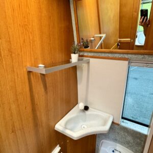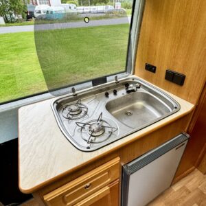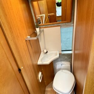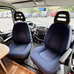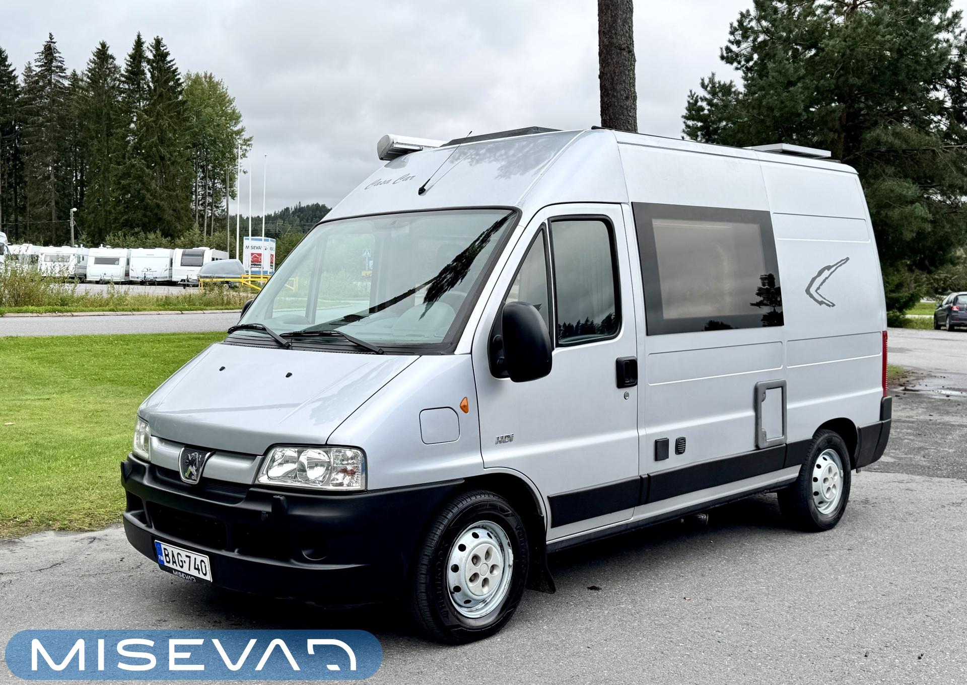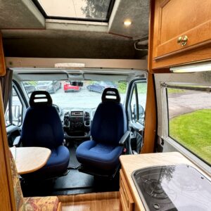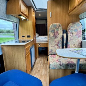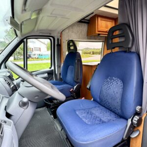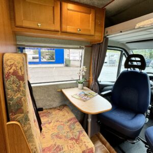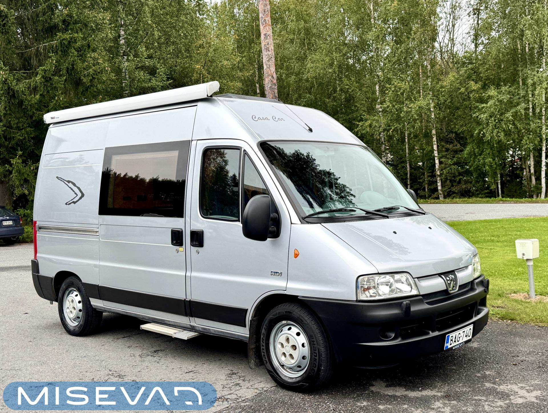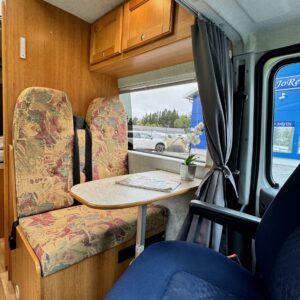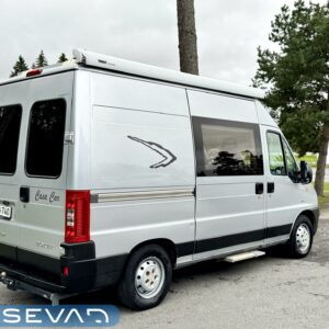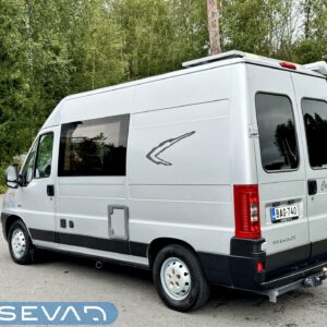 Poikittainen parivuode, Sun shade, Solar panel, Two tyre sets, Cassette WC, Cassette blinds, Roof hatch, Stove, Sink, Power steering, Radio, Towing hook, Airbag, Fuel-operated additional heater, Cab air conditioning, Kompressori Jääkaappi