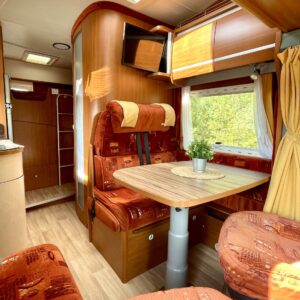 ABS brakes, Airbag, Cab air conditioning, Fridge, Two tyre sets, Cassette WC, Cassette blinds, Kattokaiteet/tikaat, Roof hatch, Stove, Hot water boiler, Sun shade, Power steering, Bicycle rack, Stereo system, Turbo, Bunk bed, Freezer compartment, Sink, Radio, Electric windows, Power side mirrors, Vakionopeudensäädin, Ilmastointi (ohjaamo), jenkkijääkaappi, televisio, Asuinosan lämmitys Webastolla