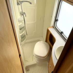 ABS brakes, Airbag, Solar panel, Fridge, Two tyre sets, Cassette WC, Cassette blinds, Stove, Hot water boiler, Sun shade, Navigator, Power steering, Freezer compartment, Double bed, Bicycle rack, Shower, Trumatic, Turbo, TV antenna/satellite dish, Towing hook