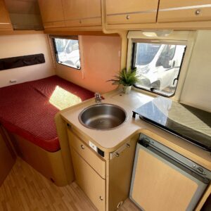Truma, Fridge, Cassette WC, Cassette blinds, Roof hatch, Stove, Hot water boiler, Sun shade, Power steering, Freezer compartment, Double bed, Sink, Bicycle rack, Radio, Shower, Electric windows, Power side mirrors, Electric steps, TV-antenni tai lautasantenni, Turbo, Ilmastointi (ohjaamo), Solar panel, Airbag, Navigator, Fog lights, Vakionopeudensäädin