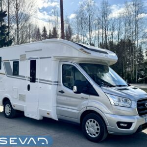 Towing hook, Ilmastointi: Manuaalinen, Two tyre sets, Bicycle rack, Ohjaamoilmastointi- manuaalinen, Solar panel, ABS brakes, Airbag, Trip computer, Special wheels, Fridge, Cab air conditioning, Cassette WC, Cassette blinds, Roof hatch, Keskuslukitus: Kaukosäätöinen, Central heating, Ignition interlock, Stove, Hot water boiler, Sink, Double bed, Power steering, Trumatic, Shower, Electric windows, Electric heating cartridge, Vakionopeudensäädin, Pysäköintikamera, Radio