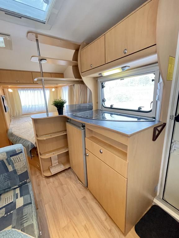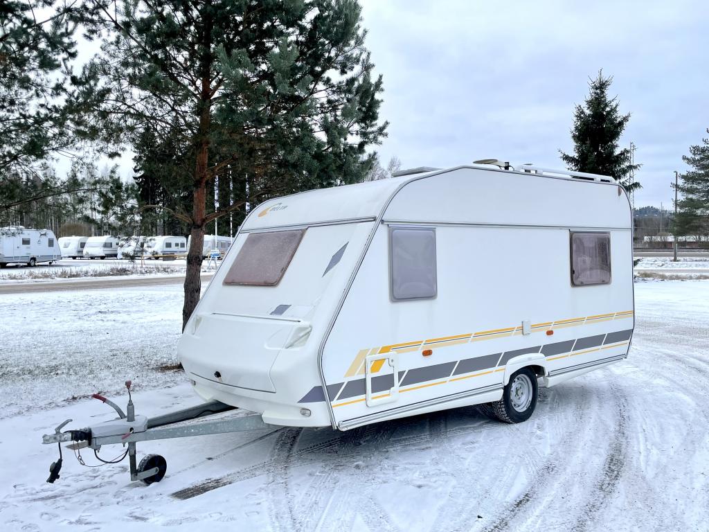 Jääkaappi,Kasetti WC,Kasettiverhot,Kattoluukku,Lattialämmitys,Liesi,Lämminvesiboileri,Sähköpatruuna,Trumatic,Tukijalat