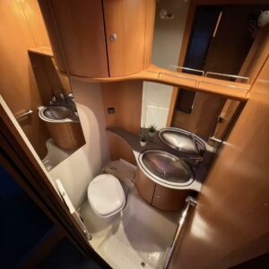 Alde, Separate beds, Fridge, Gas oven, Cassette WC, Cassette blinds, Roof hatch, Central heating, Floor heating, Stove, Hot water boiler, Sun shade, Fluid circulation heating, Freezer compartment, Sink, Electric heating cartridge, Support legs, TV antenna/satellite dish, Radio