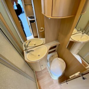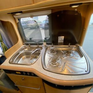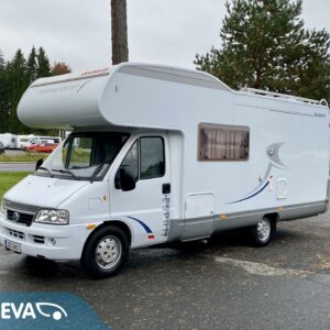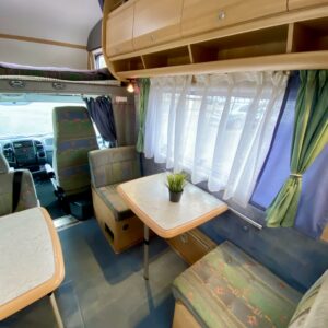 Fridge, Cassette WC, Cassette blinds, Bunk bed, Stove, Hot water boiler, Bicycle rack, Shower, Trumatic, Turbo, TV antenna/satellite dish, Towing hook, Player, Cab air conditioning, Roof railing/ladder, Roof hatch, Central heating, Power steering, Freezer compartment, Double bed, Sink, Pysäköintikamera, Radio, Electric steps, Truma, Webasto/Eber