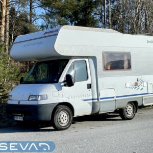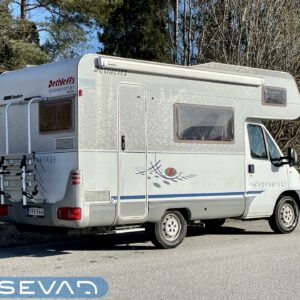 Alde, Insulated grey water tank, Fridge, Cassette WC, Cassette blinds, Roof hatch, Central heating, Floor heating, Stove, Engine heater, Hot water boiler, Sun shade, Fluid circulation heating, Power steering, Freezer compartment, Sink, Bicycle rack, Radio, Shower, Electric heating cartridge, Rear kitchen, Turbo, Lattialämmitys (sähkö), harmaavesisäiliön lämmitys