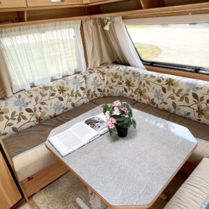 Alde, Separate beds, Fridge, Cassette WC, Cassette blinds, Roof hatch, Passenger area carpets, Stove, Hot water boiler, Fluid circulation heating, Freezer compartment, Sink, Shower, Electric heating cartridge, Support legs, Lattialämmitys (sähkö), Kesärenkaat, liesituuletin, kaasun ulosotto