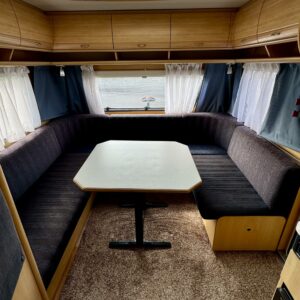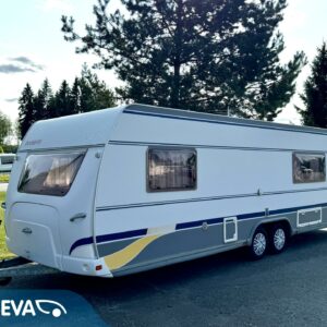 Alde, Fridge, Cassette WC, Roof hatch, Bunk bed, Floor heating, Stove, Microwave oven, Fluid circulation heating, Double bed, Sink, Support legs, Talvirenkaat(kitka), Lattialämmitys (sähkö)