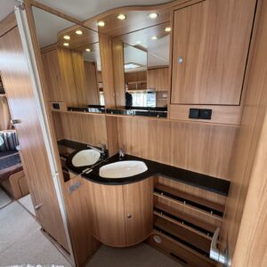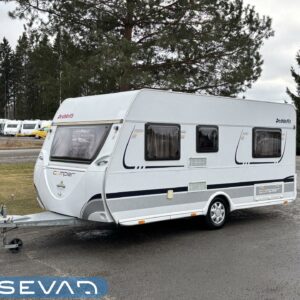 Alde, Shower, Fridge, Stove, Freezer compartment, Support legs, Cassette WC, liesituuletin, Cassette blinds, Roof hatch, Electric heating cartridge, sähkön ulosotto, kwh-mittari, kaasun ulosotto, Passenger area carpets, Fluid circulation heating, Hot water boiler, Sink, Double bed, Lattialämmitys (nestekierto), Kesärenkaat