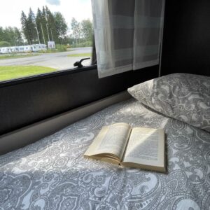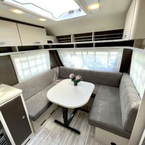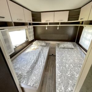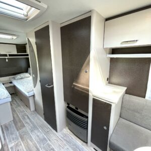 Separate beds, Fridge, Cassette WC, Cassette blinds, Roof hatch, Stove, Hot water boiler, Freezer compartment, Double bed, Shower, Trumatic, Support legs, Sink, Electric heating cartridge, Asuinosan hyttysovi/verho, televisio, kwh-mittari, Microwave oven, TV-antenni tai lautasantenni