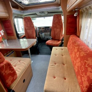 ABS brakes, Airbag, Fridge, Ilmastointi: Manuaalinen, Cab air conditioning, Gas oven, Two tyre sets, Cassette WC, Cassette blinds, Roof hatch, Hot water boiler, Ignition interlock, Sun shade, Power steering, Freezer compartment, Double bed, Sink, Trumatic, Turbo, Electric heating cartridge, Radio, Shower, Central heating, Passenger area carpets, Engine heater, Bicycle rack, Pysäköintikamera