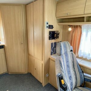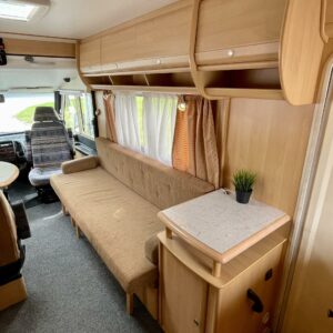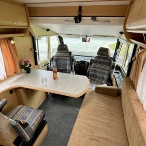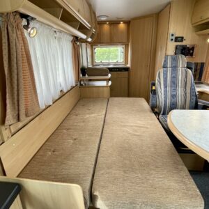 Aggregaatti, CD-soitin, Special wheels, Fridge, Two tyre sets, Cassette WC, Cassette blinds, Roof hatch, Hot water boiler, Engine heater, Stove, Passenger area carpets, Floor heating, Central heating, Sun shade, Power steering, Freezer compartment, Double bed, Sink, Electric heating cartridge, Electric windows, Shower, Radio, Bicycle rack, Rear kitchen, Trumatic, TV-antenni tai lautasantenni, Turbo