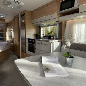 Alde, Fridge, Gas oven, Cassette WC, Roof hatch, Bunk bed, Passenger area carpets, Stove, Microwave oven, Fluid circulation heating, Freezer compartment, Double bed, Sink, Shower, TV-antenni tai lautasantenni, Support legs, Lattialämmitys (nestekierto), Tiiveystakuu voimassa, pullonvaihtaja, sähkön ulosotto, televisioteline, Ilmastointi: Automaattinen, Electric heating cartridge, Hot water boiler, Special wheels, Cassette blinds