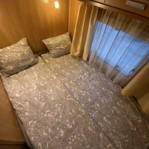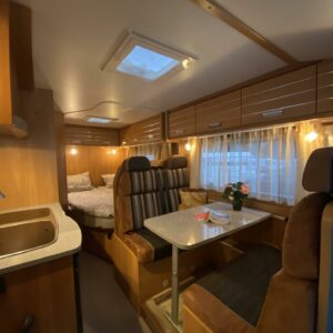 ABS brakes, Airbag, Trip computer, Cab air conditioning, Fridge, Two tyre sets, Cassette WC, Cassette blinds, Roof hatch, Keskuslukitus: Kaukosäätöinen, Central heating, Passenger area carpets, Stove, Engine heater, Hot water boiler, Sun shade, Fluid circulation heating, Power steering, Freezer compartment, Double bed, Sink, Bicycle rack, Radio, Shower, Electric windows, Electric heating cartridge, Power side mirrors, Turbo, Vakionopeudensäädin, Alde, Lattialämmitys (sähkö), Vakionopeuden säädin, Talvirenkaat(nasta), Kesärenkaat, Alde lämmönvaihdin