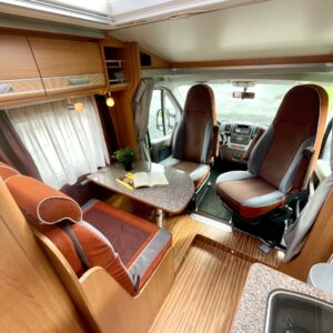 ABS brakes, Airbag, Trip computer, Cab air conditioning, Fridge, Cassette WC, Cassette blinds, Keskuslukitus: Kaukosäätöinen, Central heating, Ignition interlock, Stove, Hot water boiler, Sun shade, Power steering, Freezer compartment, Double bed, Sink, Fuel-operated additional heater, Pysäköintikamera, Bicycle rack, Trumatic, Turbo, Electric heating cartridge