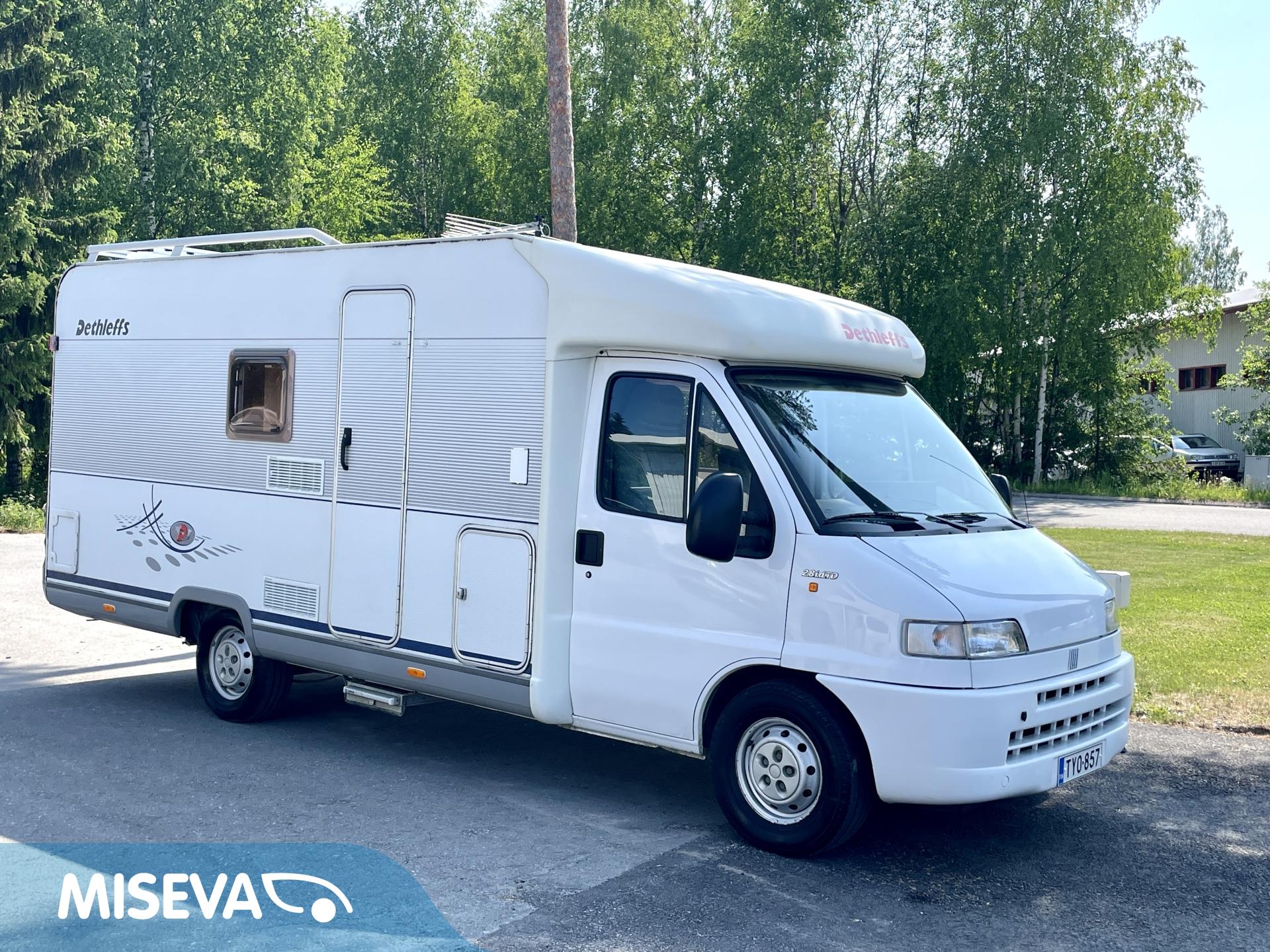 CD-soitin, Fridge, Two tyre sets, Cassette WC, Cassette blinds, Roof hatch, Hot water boiler, Stove, Central heating, Power steering, Freezer compartment, Double bed, Sink, Shower, Electric steps, TV-antenni tai lautasantenni, Trumatic, Turbo, Roof railing/ladder