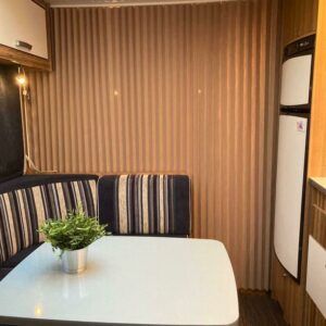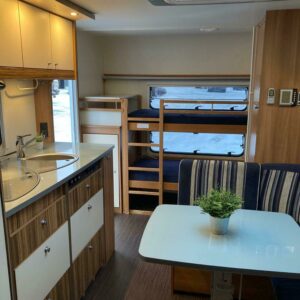 Alde, Fridge, Cassette WC, Cassette blinds, Roof hatch, Bunk bed, Floor heating, Stove, Hot water boiler, Fluid circulation heating, Freezer compartment, Double bed, Sink, Shower, Electric heating cartridge, TV-antenni tai lautasantenni, Support legs