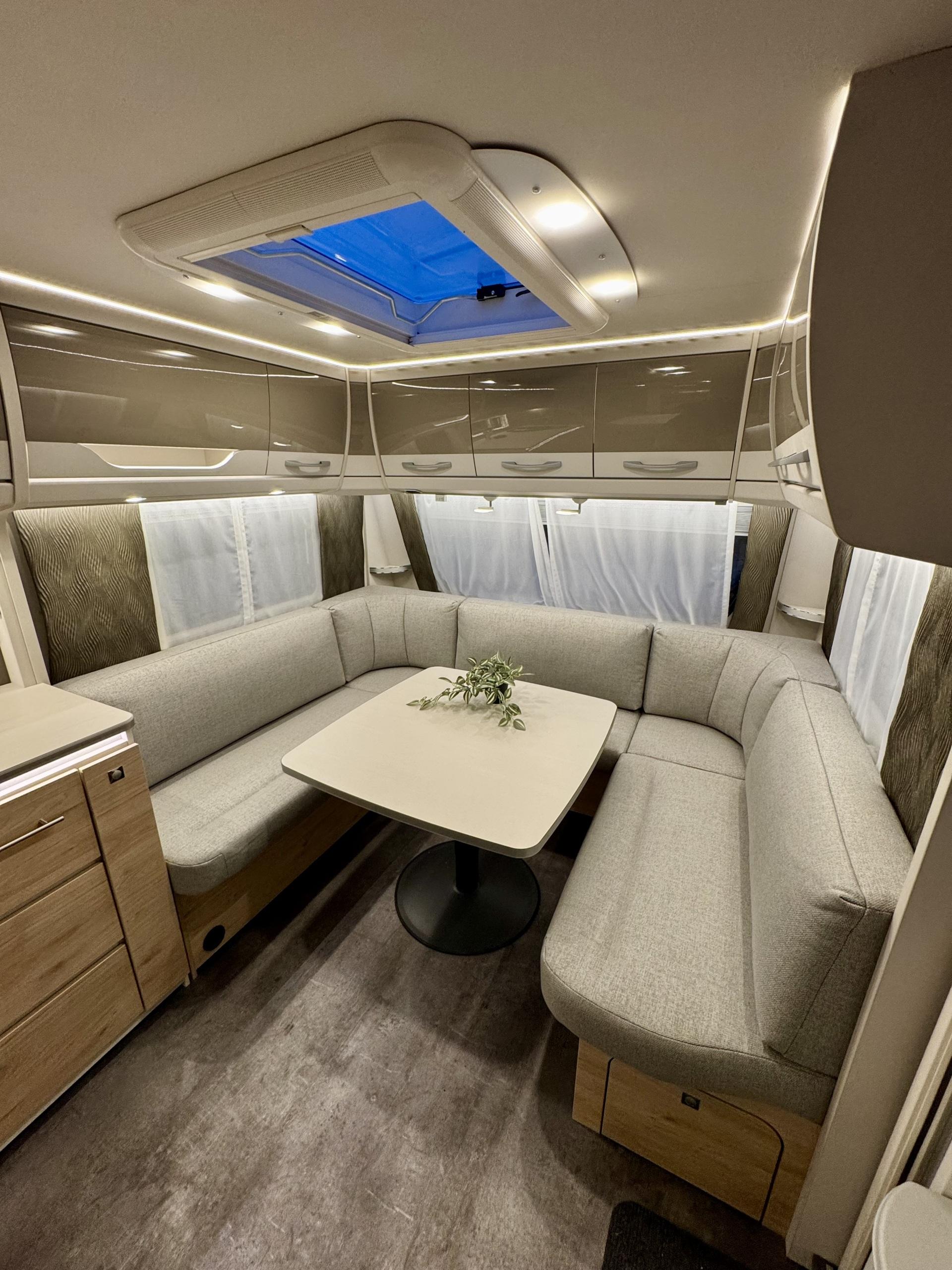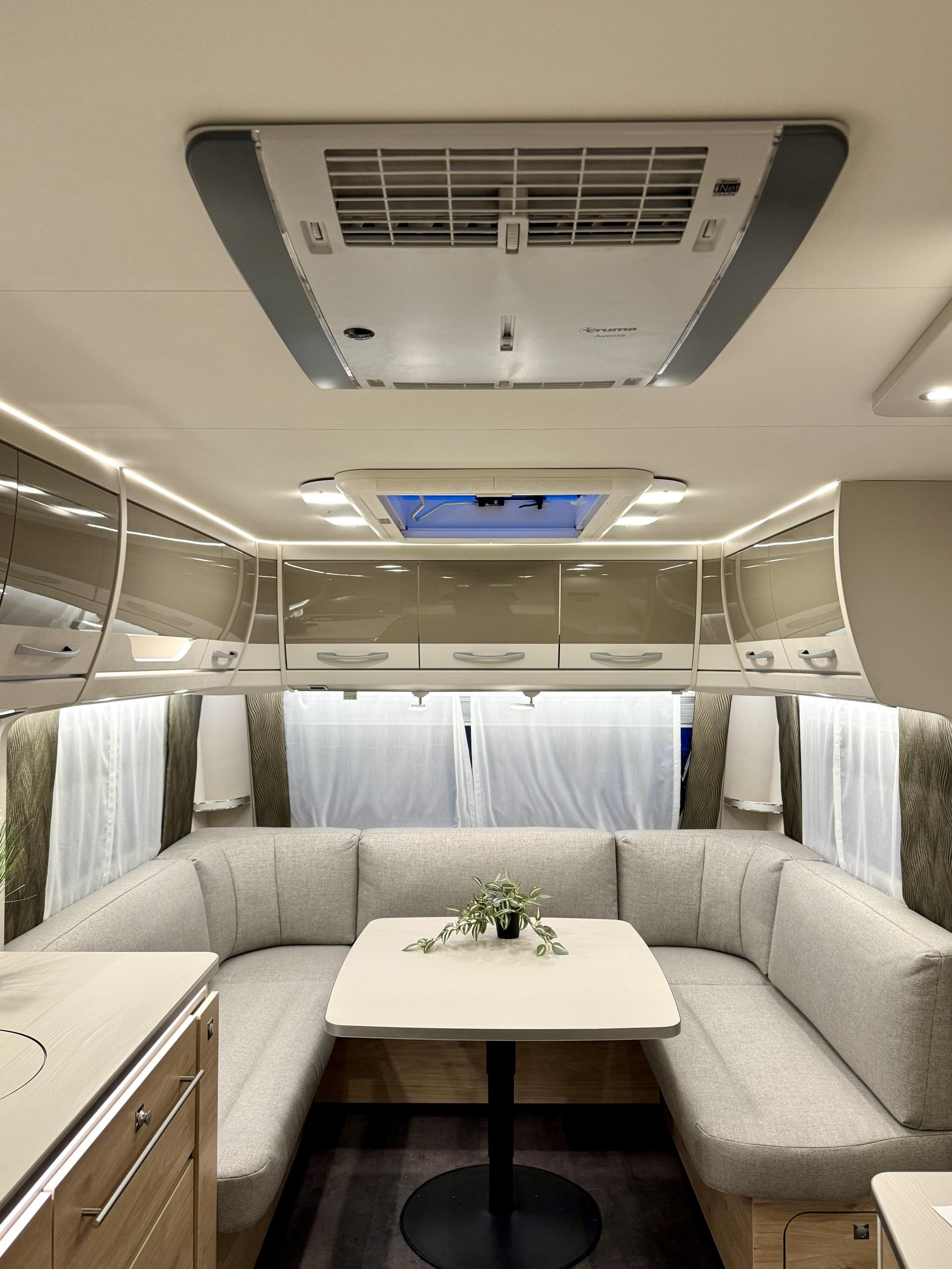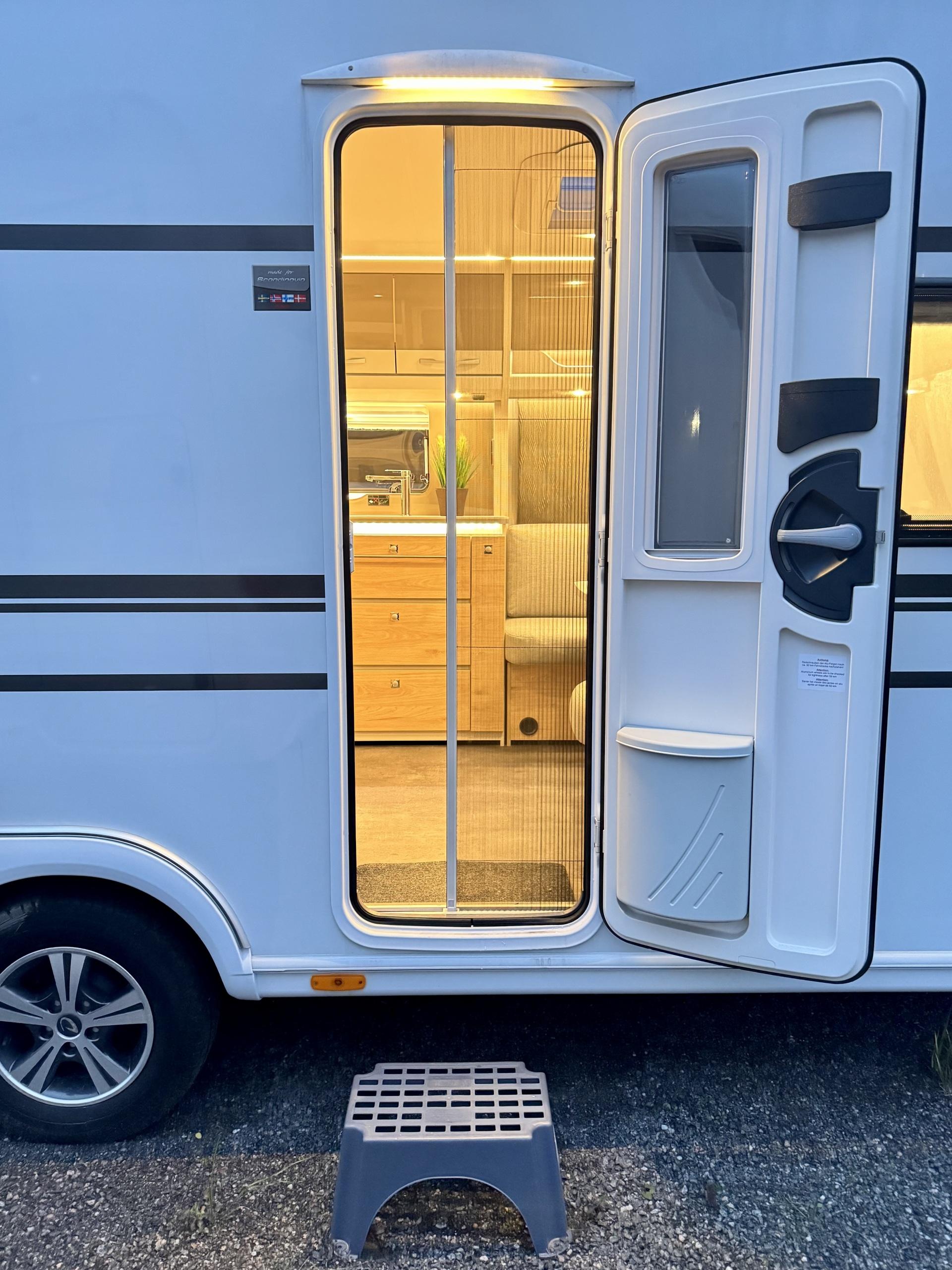 Alde, Gas oven, Cassette WC, Cassette blinds, Roof hatch, Floor heating, Passenger area carpets, Stove, Hot water boiler, Freezer compartment, Double bed, Sink, Shower, Electric heating cartridge, USB, Ilmastointi: Automaattinen