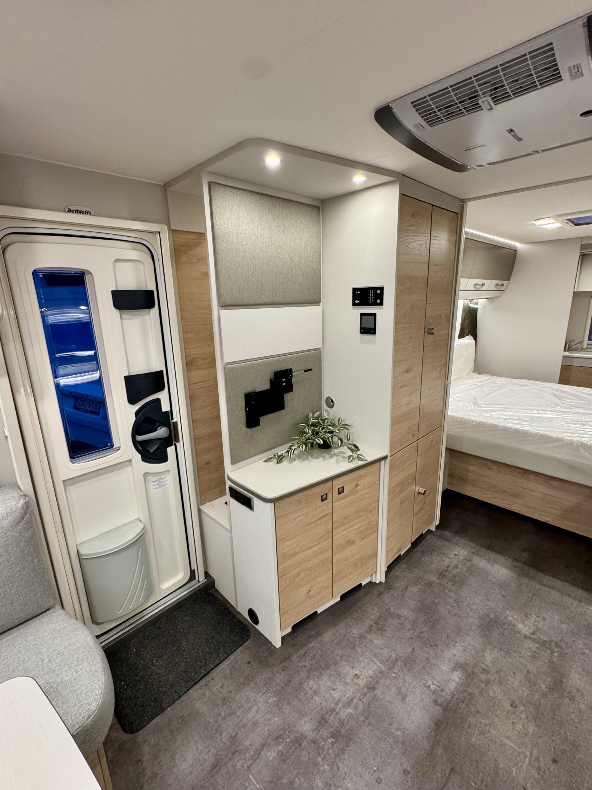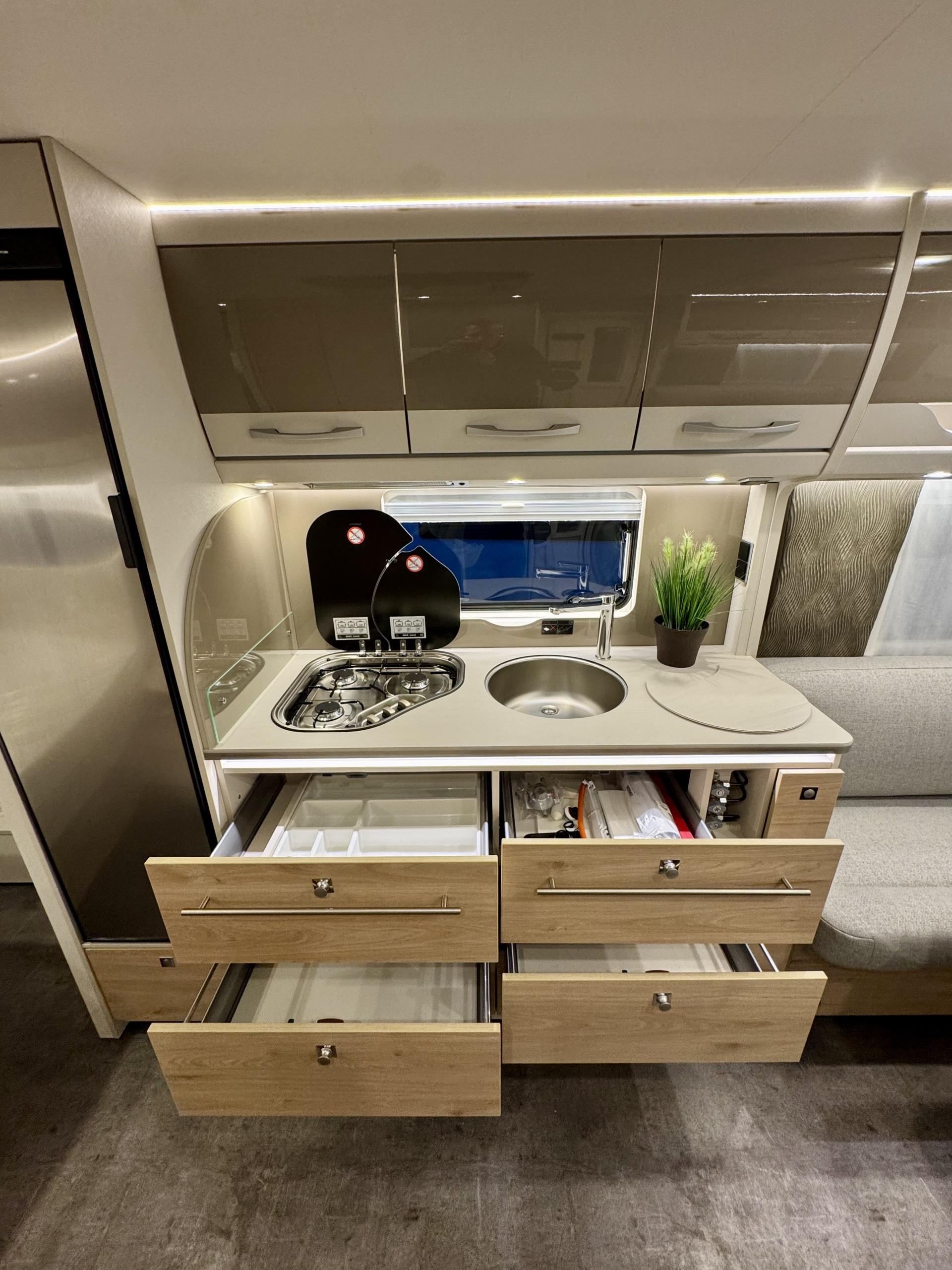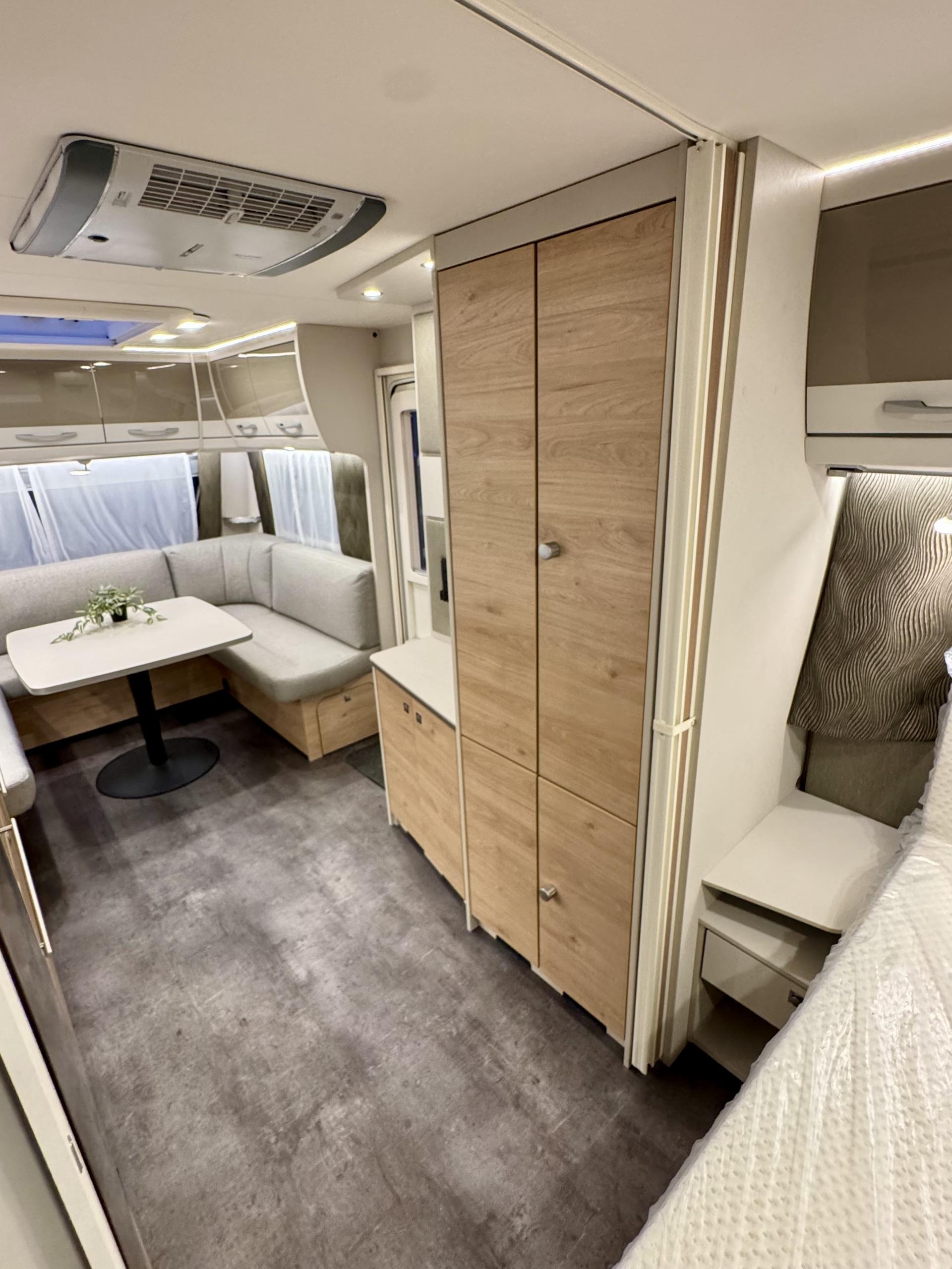 Alde, Gas oven, Cassette WC, Cassette blinds, Roof hatch, Floor heating, Passenger area carpets, Stove, Hot water boiler, Freezer compartment, Double bed, Sink, Shower, Electric heating cartridge, USB, Ilmastointi: Automaattinen