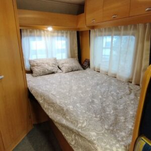 ABS brakes, Fridge, Two tyre sets, Cassette WC, Cassette blinds, Roof hatch, Keskuslukitus: Ilman kaukosäädintä, Stove, Hot water boiler, Sun shade, Power steering, Freezer compartment, Bicycle rack, Shower, Electric windows, Power side mirrors, TV-antenni tai lautasantenni, Trumatic