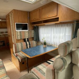 Insulated grey water tank, Fridge, Gas oven, Cassette WC, Stove, Hot water boiler, Sun shade, Double bed, Pysäköintikamera, Electric windows, Power side mirrors, Electric steps, TV-antenni tai lautasantenni, Double bottom, Towing hook, Truma, Ilmastointi (ohjaamo), Kesärenkaat, 1 x kevytmet.vanteet, laskuvuode, televisio, Truma E 2800 ohjaamon lämmitin