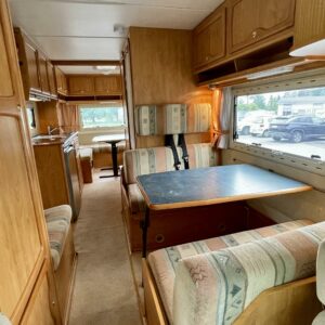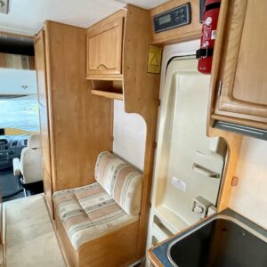 Fridge, Cassette WC, Cassette blinds, Roof hatch, Central heating, Passenger area carpets, Stove, Hot water boiler, Freezer compartment, Double bed, Sink, Radio, Shower, Electric windows, Power side mirrors, Electric steps, Trumatic, Support legs, Double bottom, Vakionopeudensäädin, Ilmastointi: Manuaalinen, Cab air conditioning, Power steering