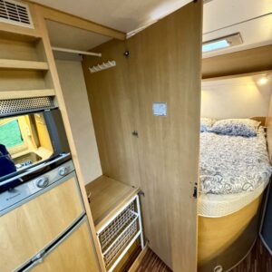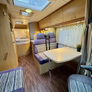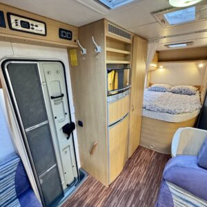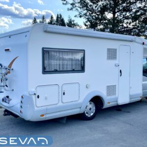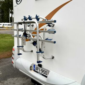 ABS brakes, Airbag, Solar panel, Cab air conditioning, Fridge, Gas oven, Cassette WC, Cassette blinds, Roof hatch, Central heating, Stove, Engine heater, Hot water boiler, Sun shade, Power steering, Freezer compartment, Double bed, Sink, Pysäköintikamera, Bicycle rack, Radio, Shower, Electric windows, Electric heating cartridge, Power side mirrors, Trumatic, Vakionopeudensäädin, Towing hook, Kesärenkaat