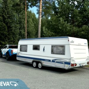 Double bed, Fridge, Cassette WC, Roof hatch, Hot water boiler, Sun shade, Freezer compartment, Sink, Shower, Trumatic, Floor heating