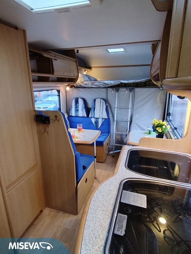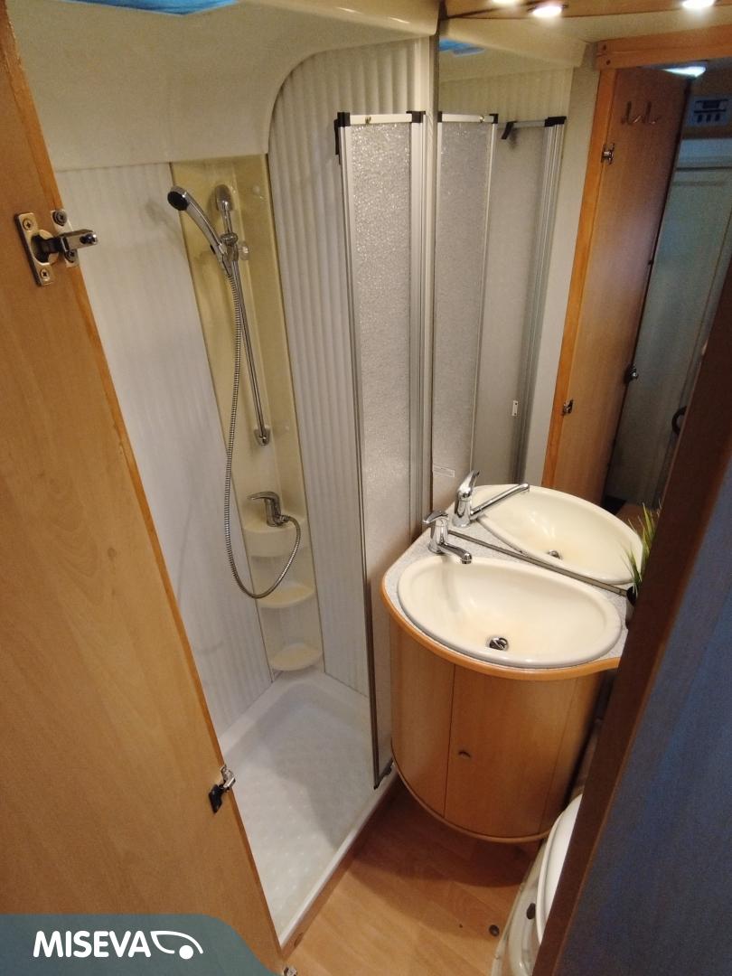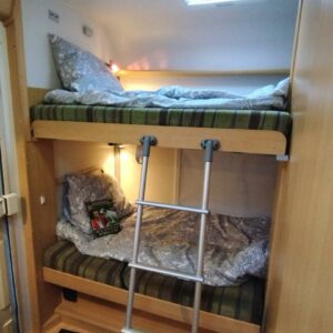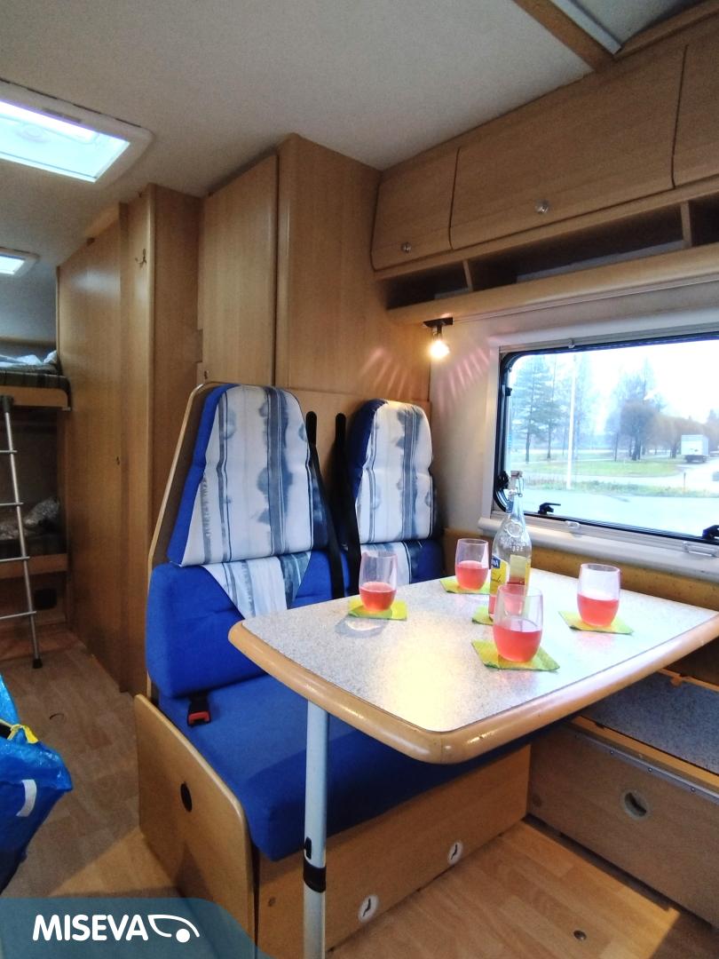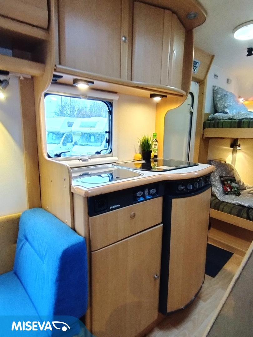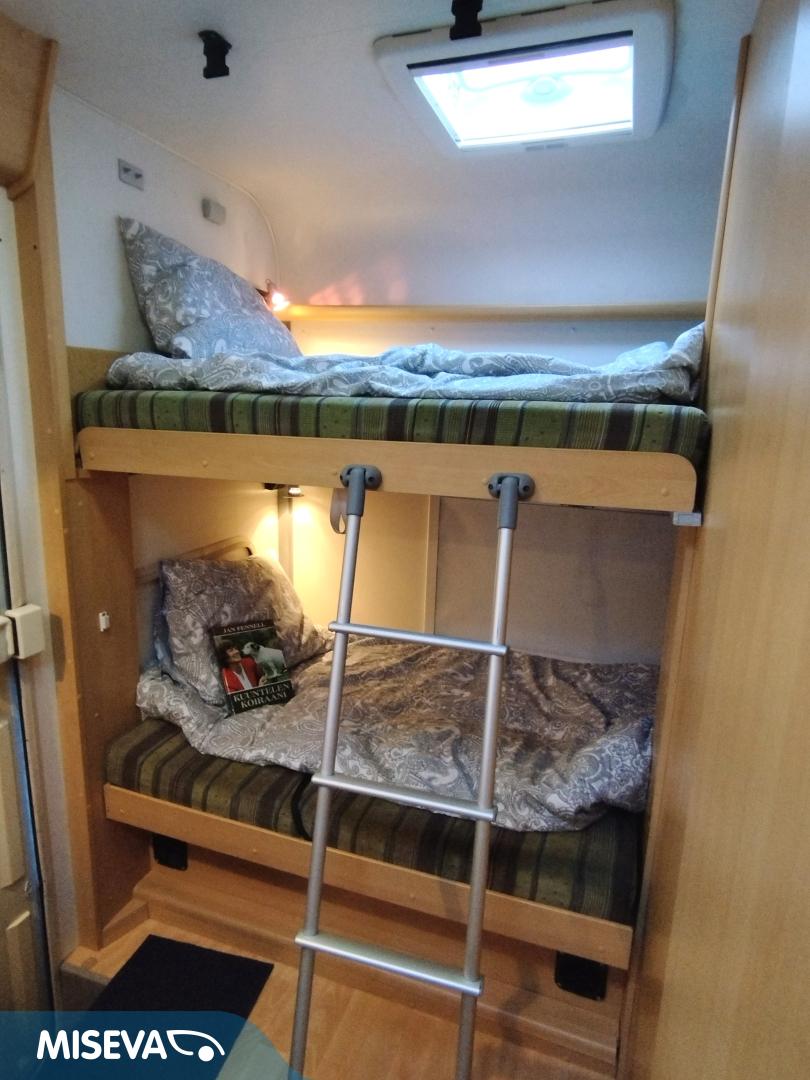 Trumatic, Towing hook, Fridge, Cassette WC, Roof railing/ladder, Roof hatch, Bunk bed, Central heating, Stove, Hot water boiler, Sun shade, Power steering, Freezer compartment, Double bed, Sink, Bicycle rack, Shower, TV-antenni tai lautasantenni, Engine heater