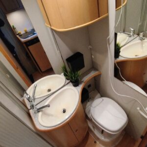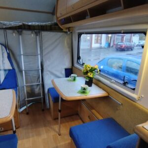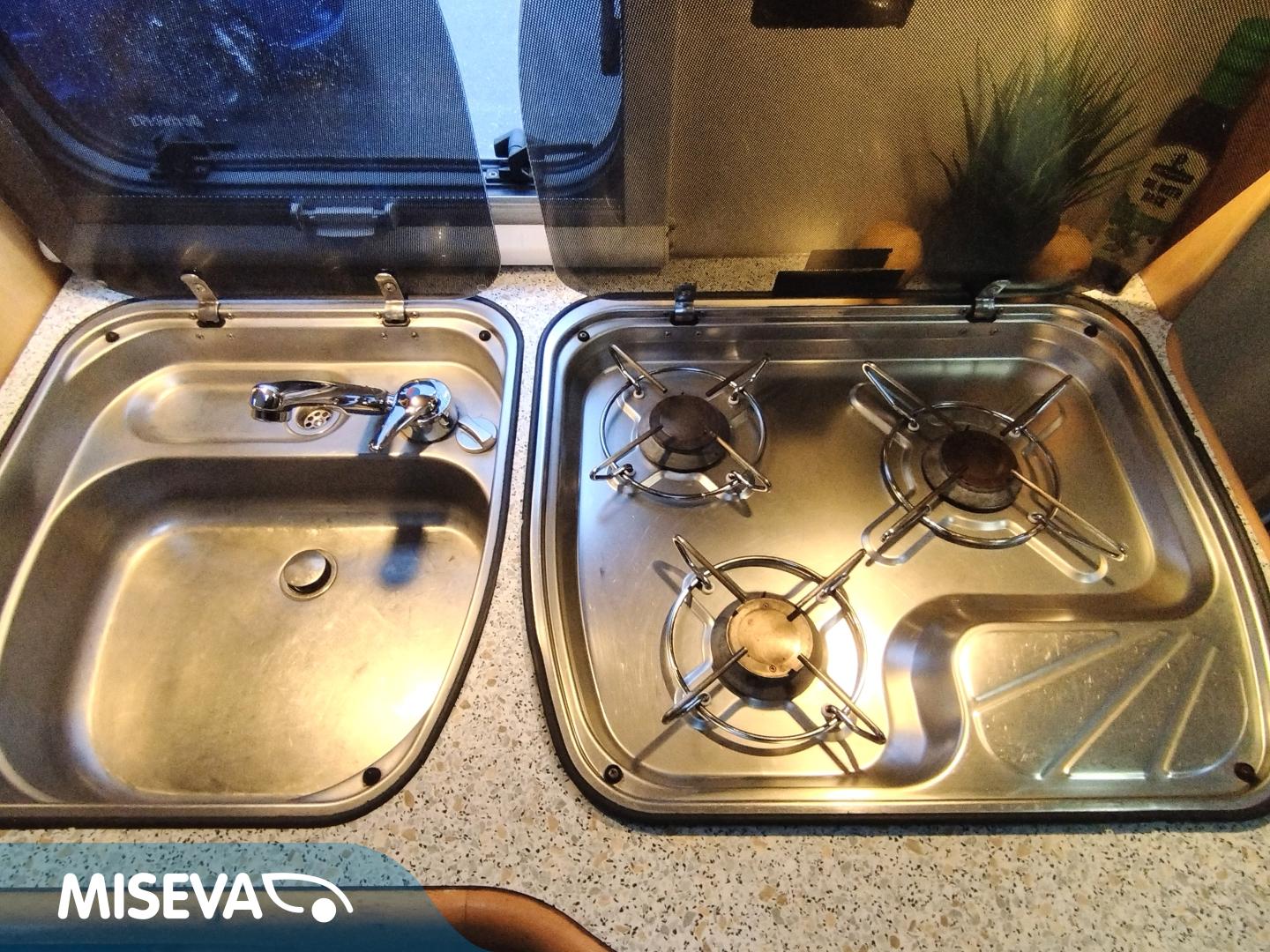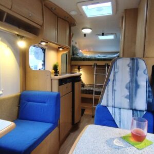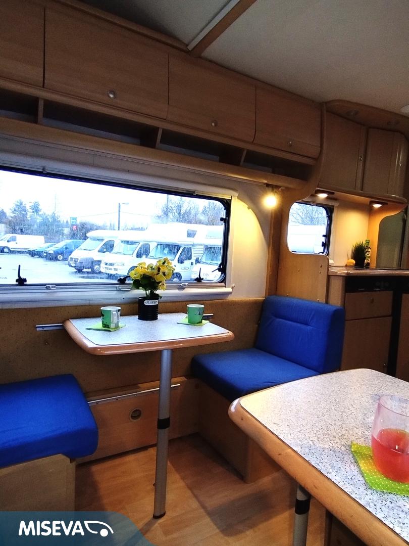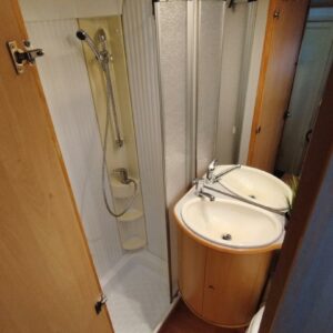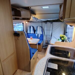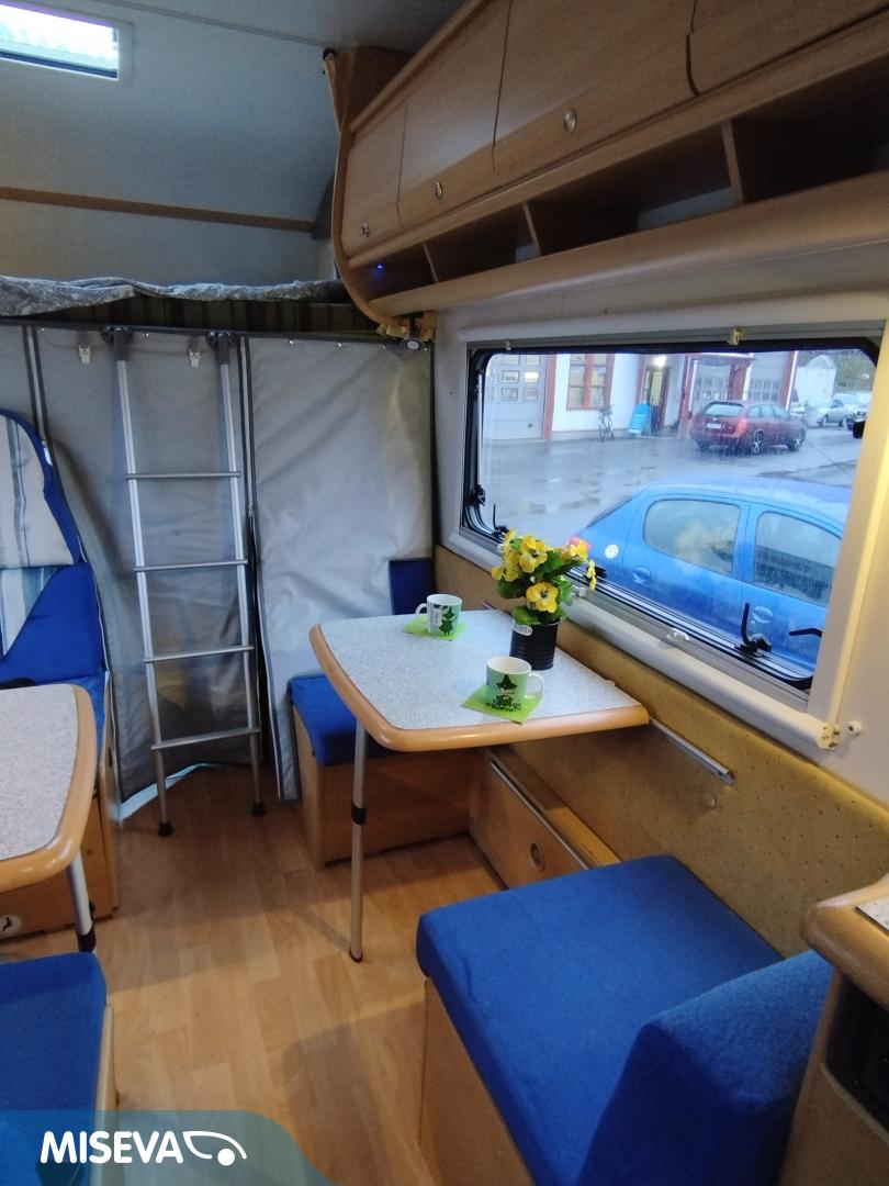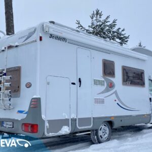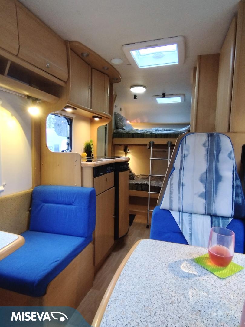 Trumatic, Towing hook, Fridge, Cassette WC, Roof railing/ladder, Roof hatch, Bunk bed, Central heating, Stove, Hot water boiler, Sun shade, Power steering, Freezer compartment, Double bed, Sink, Bicycle rack, Shower, TV-antenni tai lautasantenni, Engine heater