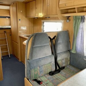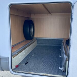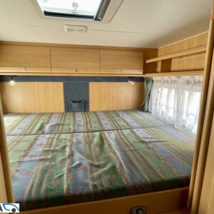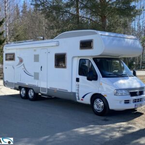 Fridge, Two tyre sets, Cassette WC, Cassette blinds, Kattokaiteet/tikaat, Roof hatch, Central heating, Ignition interlock, Stove, Hot water boiler, Sun shade, Power steering, Freezer compartment, Double bed, Parking sensor/camera, Sink, Fuel-operated additional heater, Bicycle rack, Stereo system, Shower, Electric steps, Trumatic, Support legs, TV antenna/satellite dish