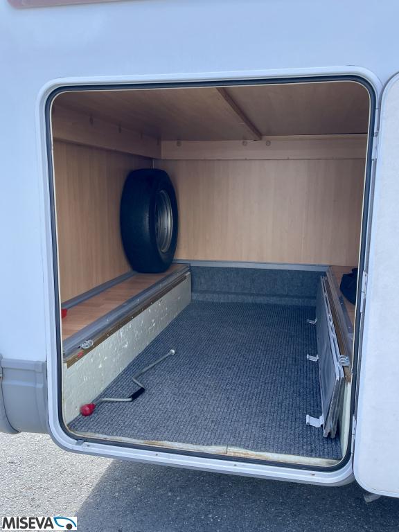 Fridge, Two tyre sets, Cassette WC, Cassette blinds, Kattokaiteet/tikaat, Roof hatch, Central heating, Ignition interlock, Stove, Hot water boiler, Sun shade, Power steering, Freezer compartment, Double bed, Parking sensor/camera, Sink, Fuel-operated additional heater, Bicycle rack, Stereo system, Shower, Electric steps, Trumatic, Support legs, TV antenna/satellite dish