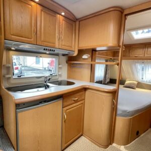 Jääkaappi,Kasetti WC,Kasettiverhot,Kattokaiteet/tikaat,Kattoluukku,Keskuslämmitys,Lattialämmitys,Lattiamatot asunto-osassa,Liesi,Lämminvesiboileri,Pakastelokero,Parivuode,Pesuallas,Pyöräteline,Sähköpatruuna,Trumatic,Tukijalat,TV-antenni/lautasantenni