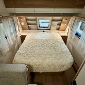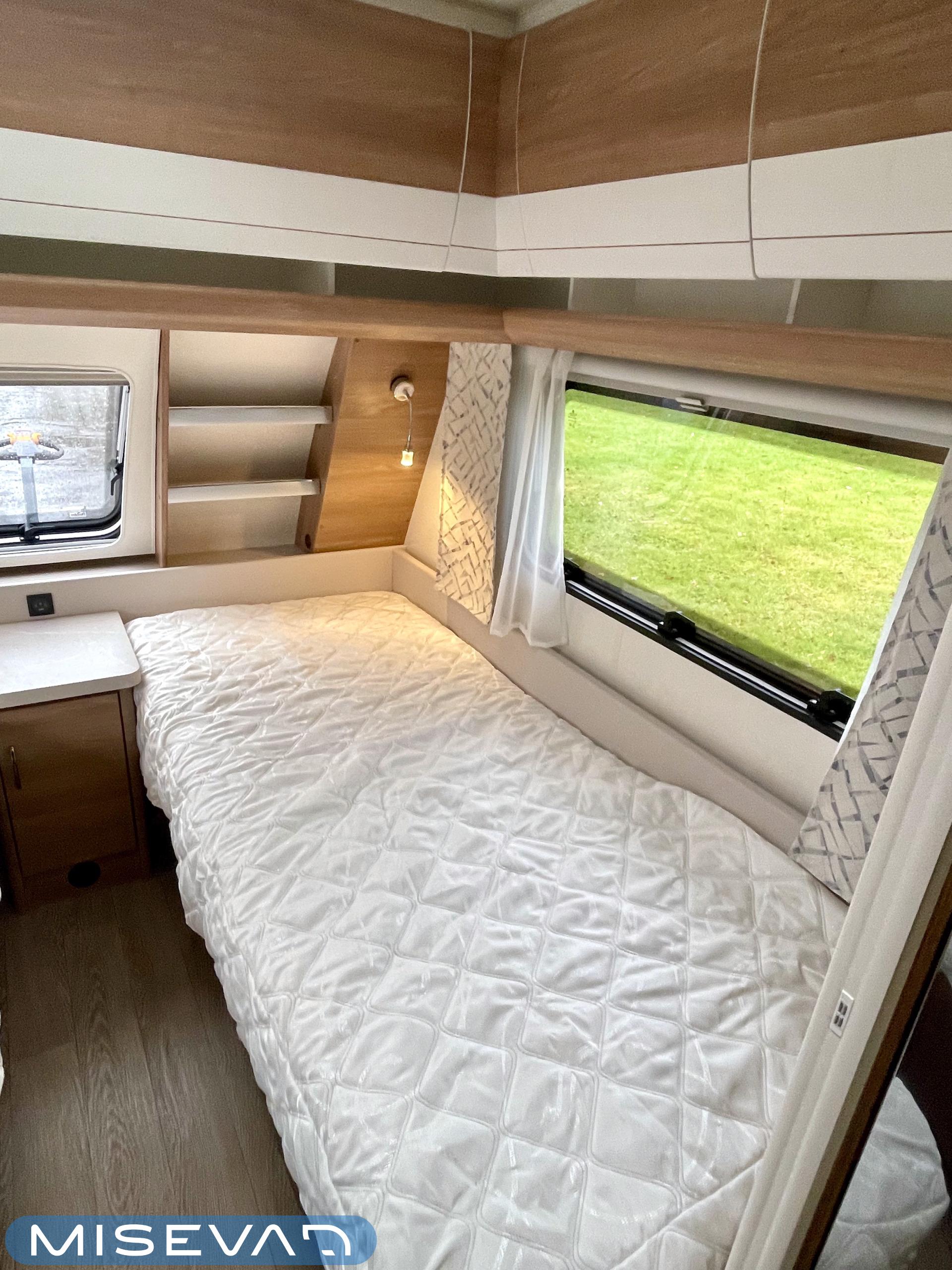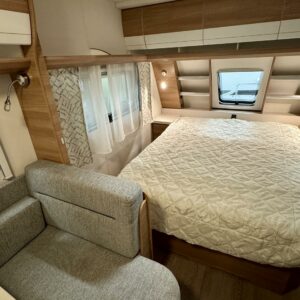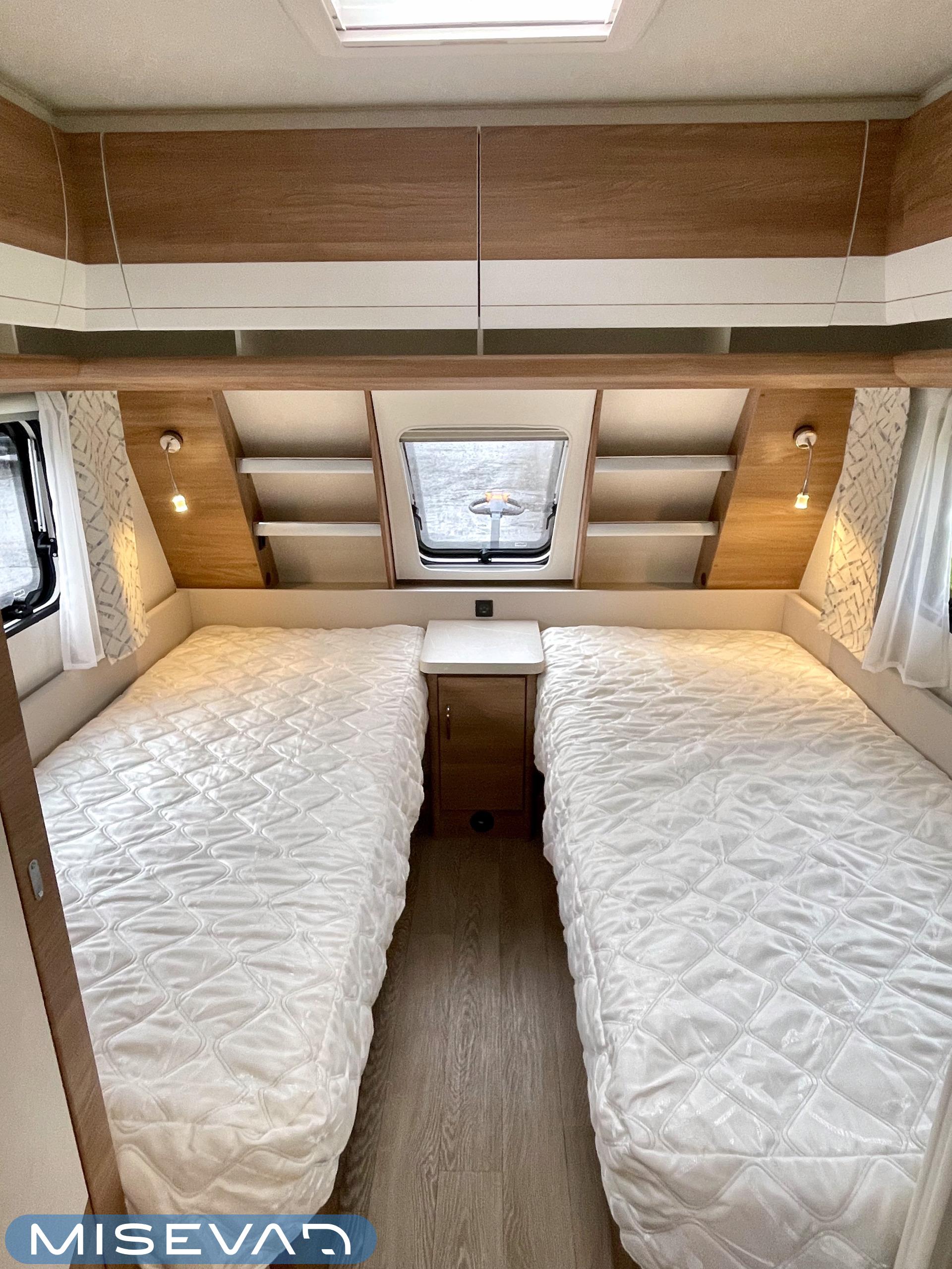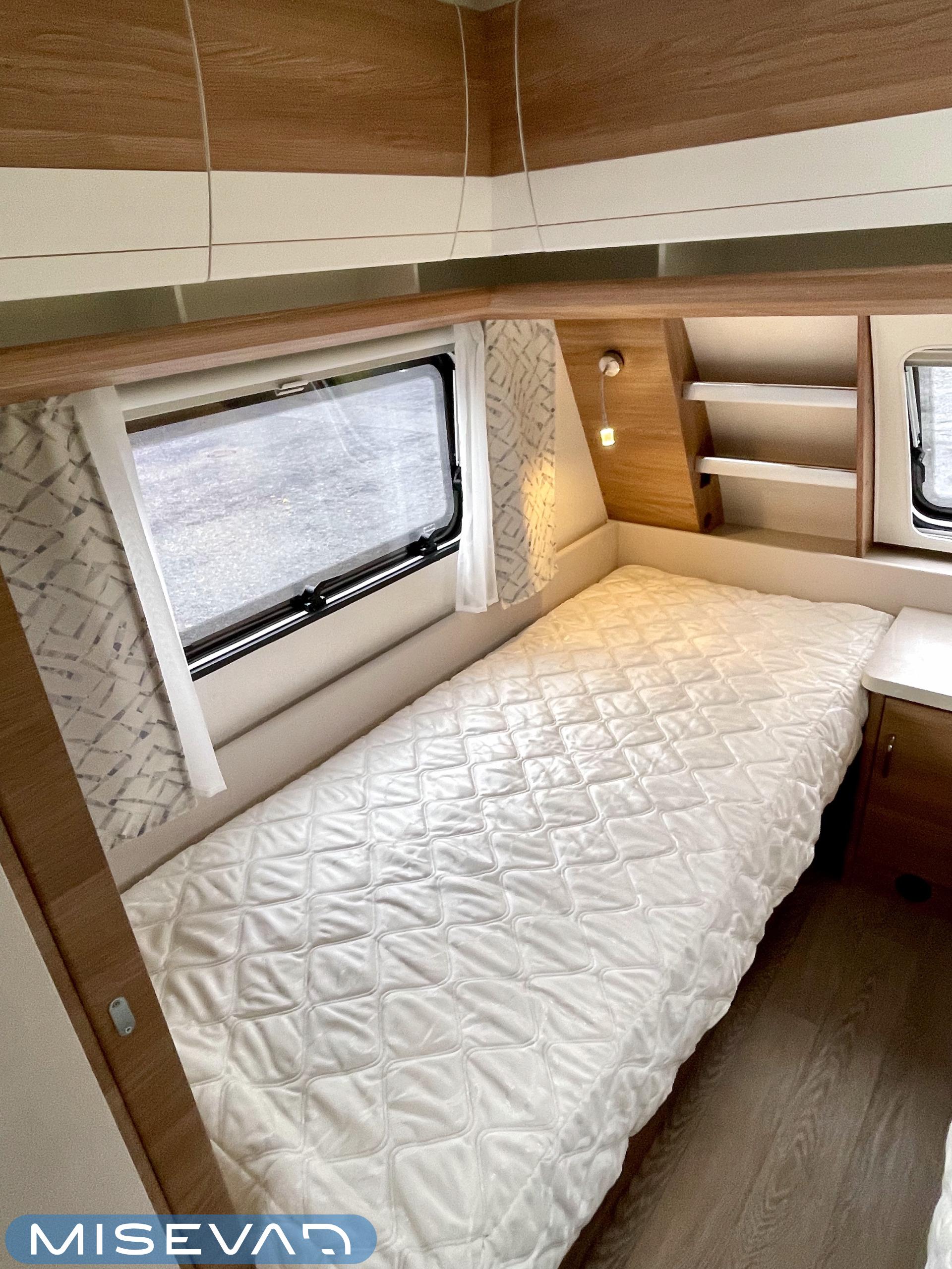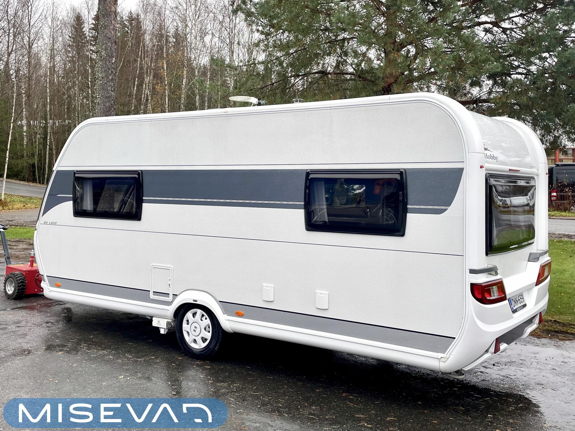 Solar panel, Fridge, Cassette WC, Cassette blinds, Roof hatch, Floor heating, Stove, Sink, Double bed, Freezer compartment, Sun shade, Hot water boiler, TV-antenni tai lautasantenni, Trumatic, Support legs