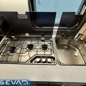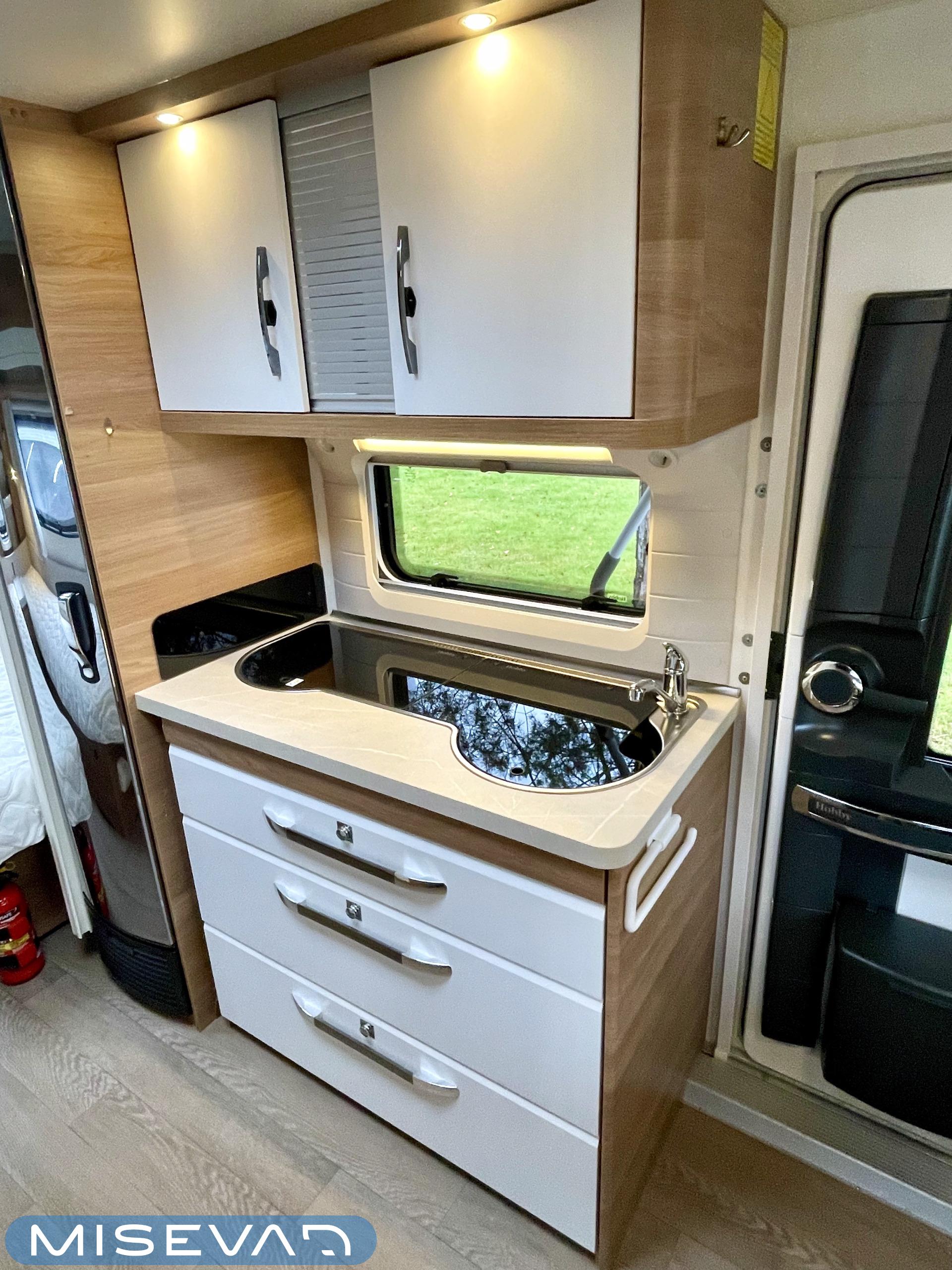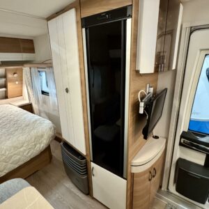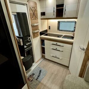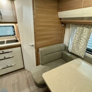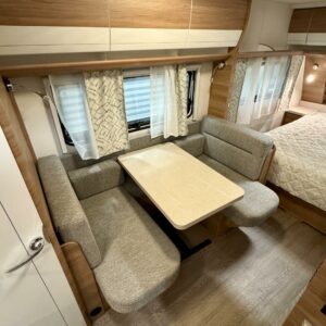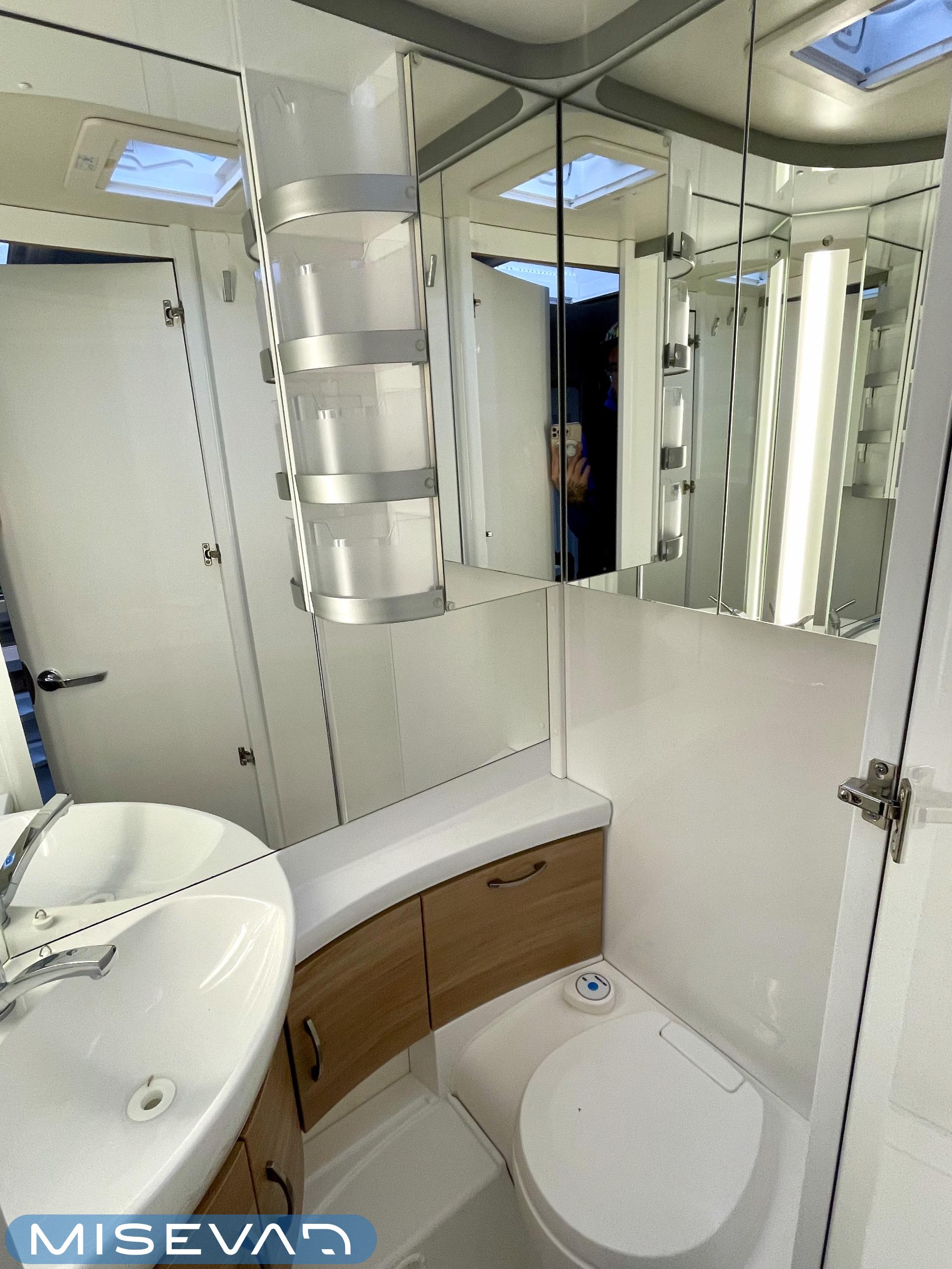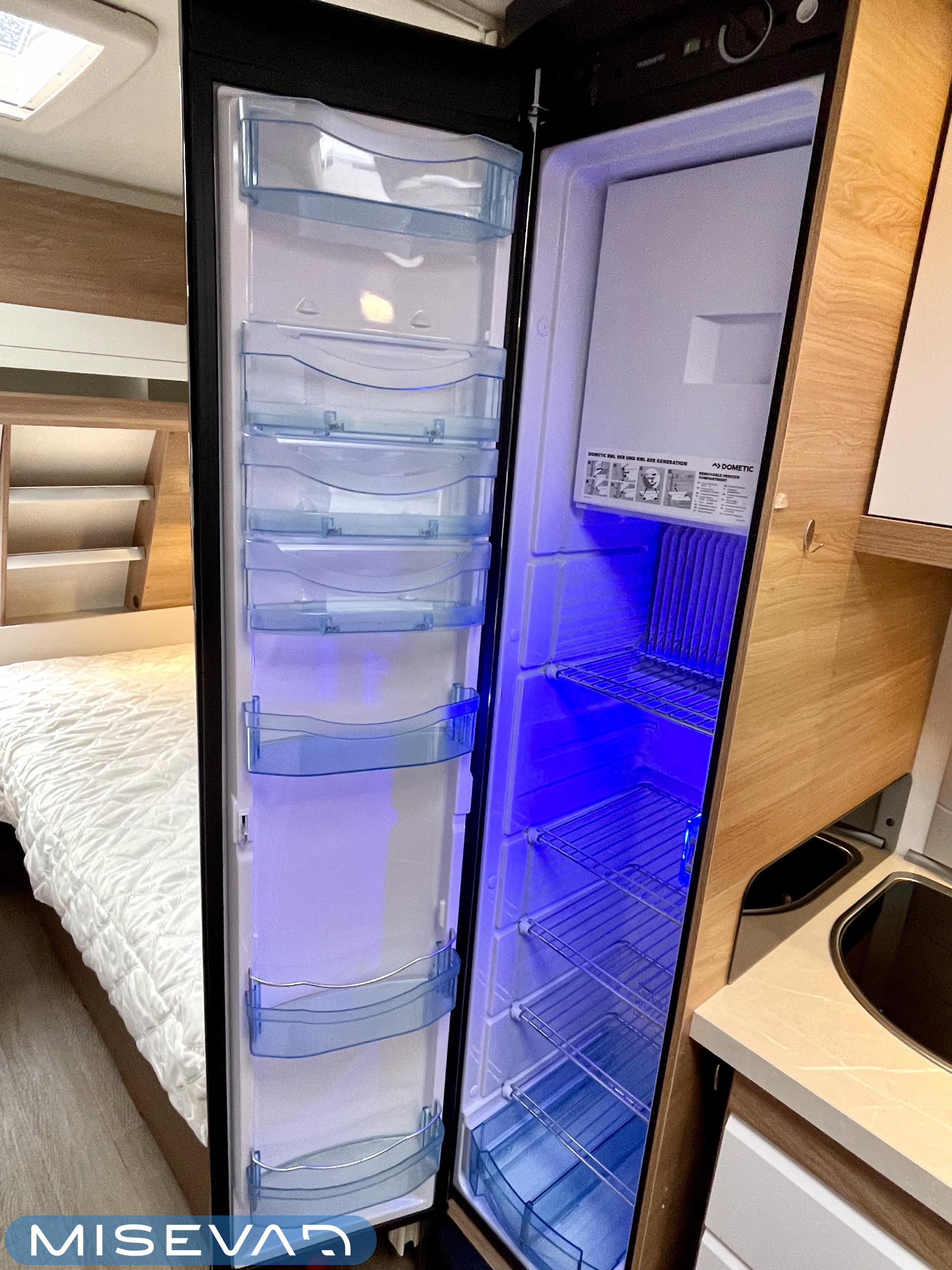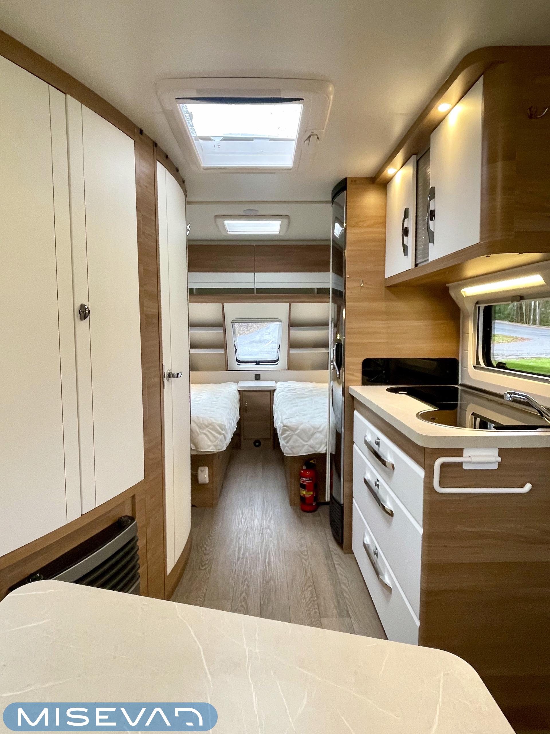 Solar panel, Fridge, Cassette WC, Cassette blinds, Roof hatch, Floor heating, Stove, Sink, Double bed, Freezer compartment, Sun shade, Hot water boiler, TV-antenni tai lautasantenni, Trumatic, Support legs