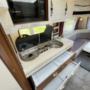 Service history, Fridge, Cassette WC, Cassette blinds, Roof hatch, Floor heating, Passenger area carpets, Stove, Hot water boiler, Microwave oven, Freezer compartment, Double bed, Sink, Shower, Electric heating cartridge, TV-antenni tai lautasantenni, Trumatic, Support legs, kwh-mittari, Tiiveystakuu voimassa, tv-antenni