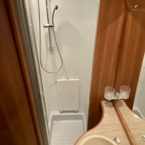 Alde, Separate beds, Cassette blinds, Cassette WC, Gas oven, Fridge, Roof hatch, Hot water boiler, Stove, Fluid circulation heating, Freezer compartment, Sink, Support legs, Electric heating cartridge, Shower, Floor heating