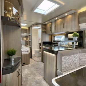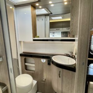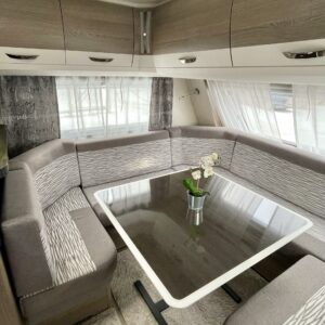 Pitkittäinen parivuode, Sun shade, Lattialämmitys- sähköinen, Alde- nestekiertoinen keskuslämmitys, Fridge, Cassette WC, Cassette blinds, Roof hatch, Passenger area carpets, Stove, Freezer compartment, Sink, Shower, Electric heating cartridge, Support legs, Hot water boiler, Kesärenkaat, sähkön ulosotto, Asuinosan hyttysovi/verho